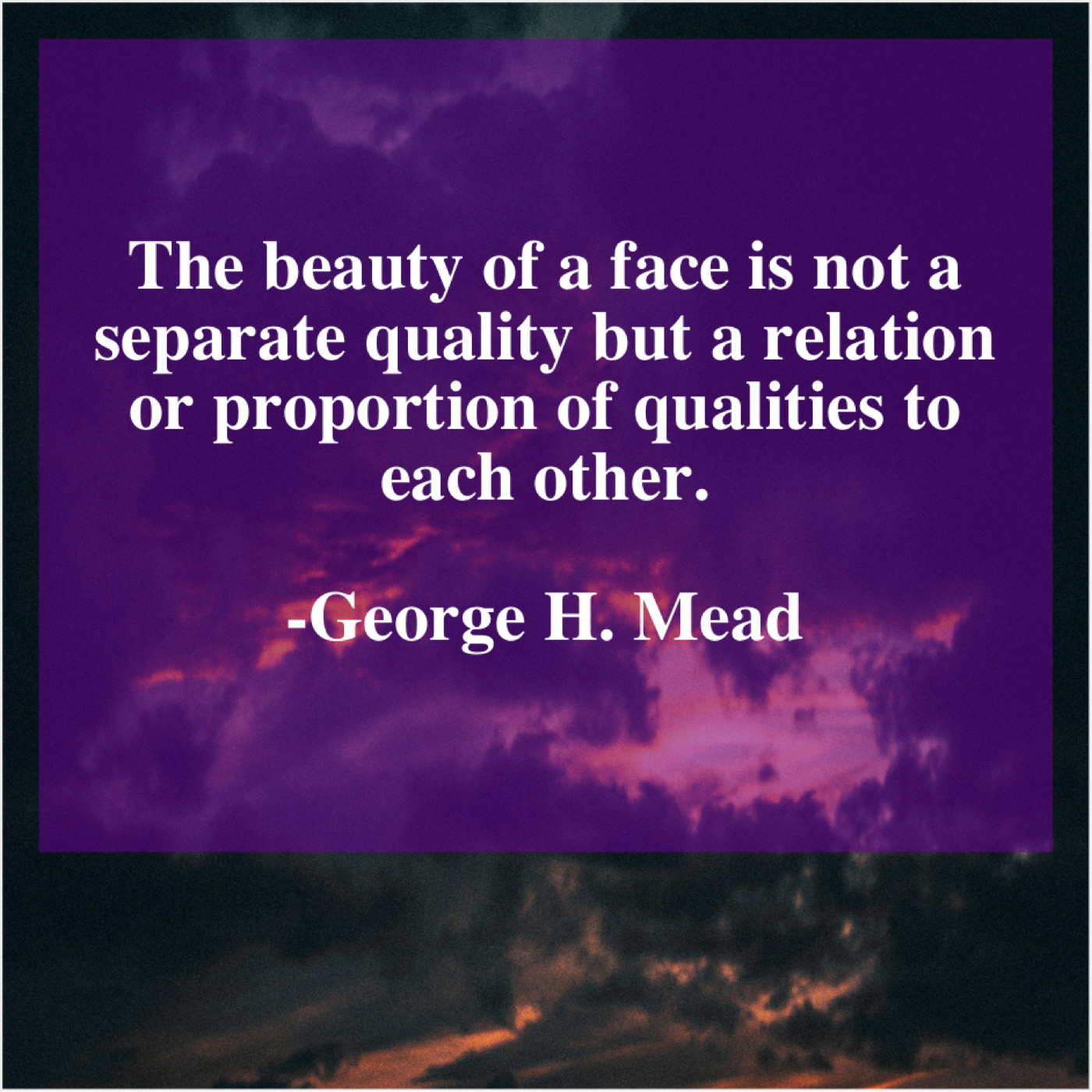 George H. Mead George H. Mead – The beauty of a face… August 30, 2019 admin “The beauty of a face is not a separate quality but a relation or proportion of qualities to each other.”-George H. Mead