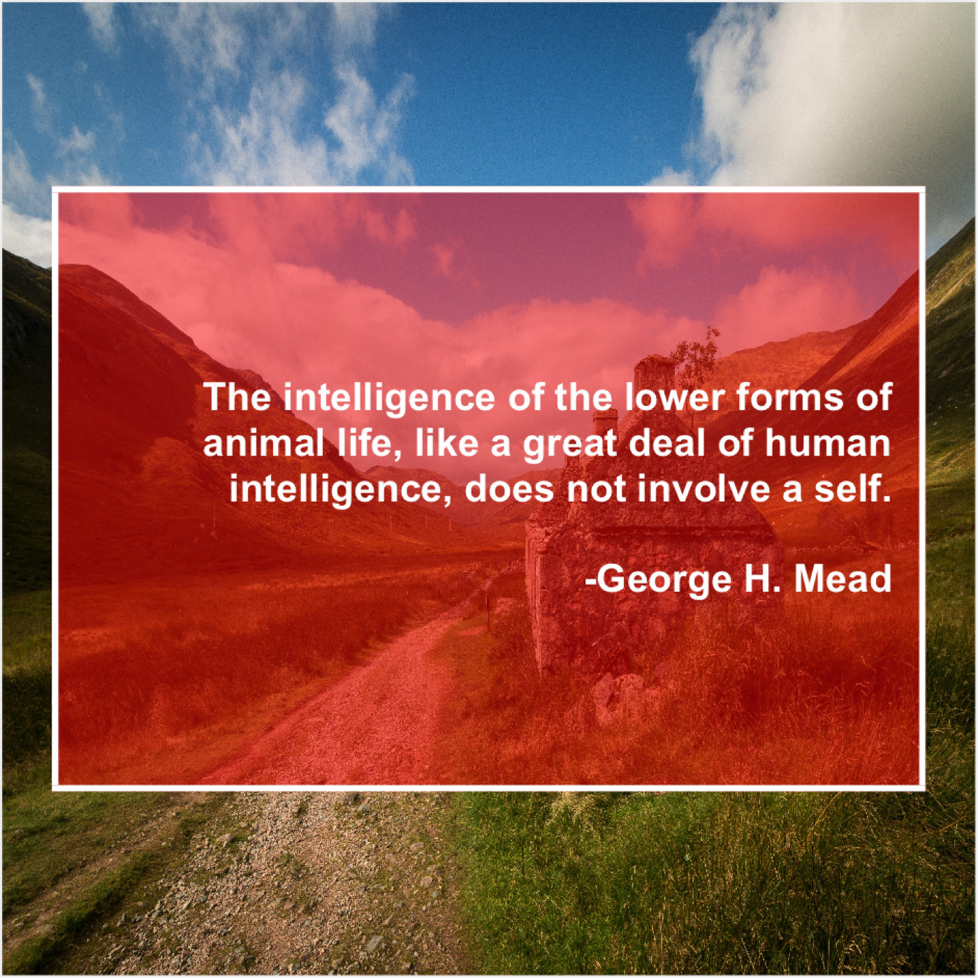 George H. Mead George H. Mead – The intelligence of the lower… May 22, 2019 admin “The intelligence of the lower forms of animal life, like a great deal of human intelligence, does not involve a self.”-George H. Mead