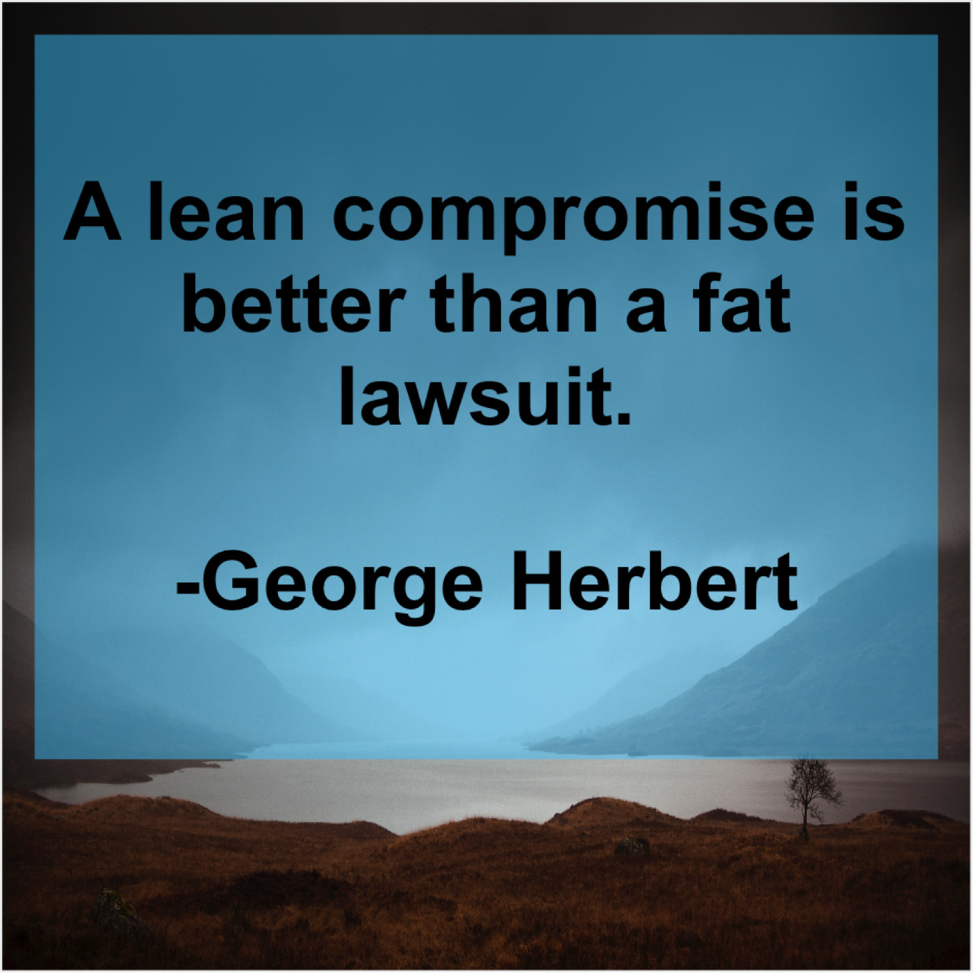 George Herbert George Herbert – A lean compromise is better… May 6, 2019 admin “A lean compromise is better than a fat lawsuit.”-George Herbert