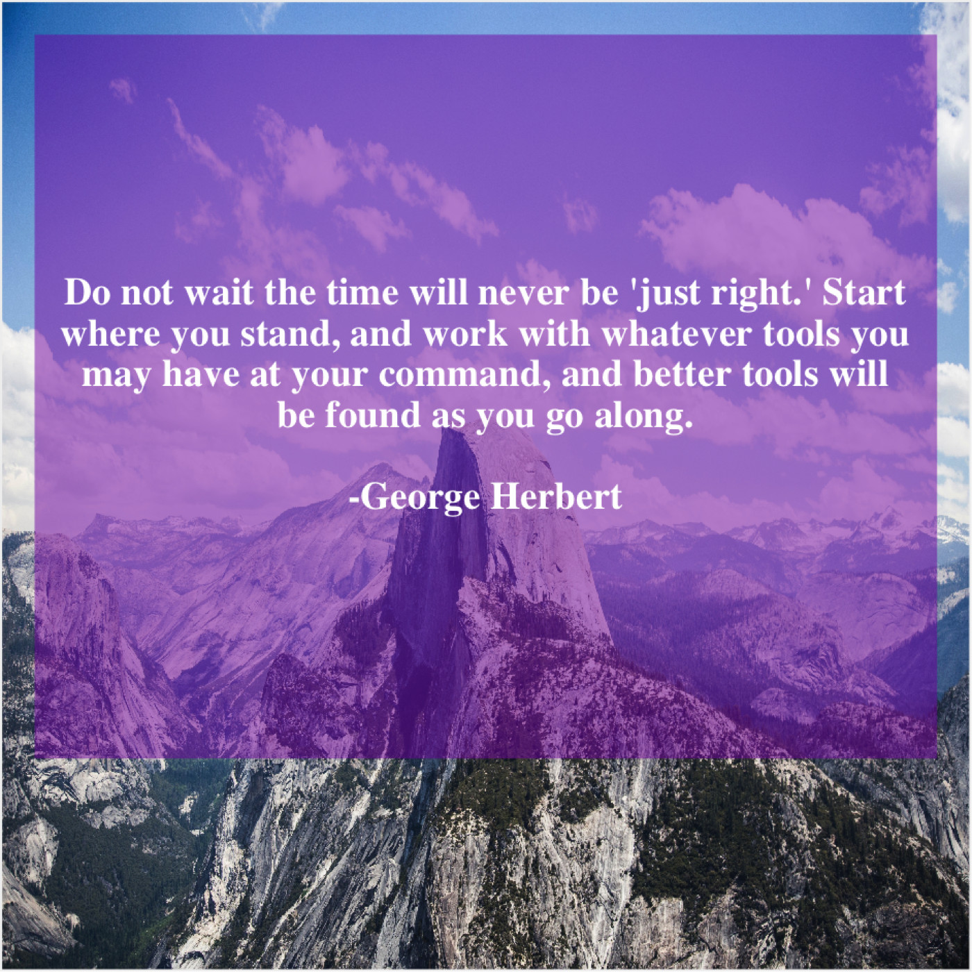 George Herbert George Herbert – Do not wait the time… August 21, 2019 admin “Do not wait the time will never be ‘just right.’ Start where you stand, and work with whatever tools you may have at your command, and better tools will be found as you go along.”-George Herbert