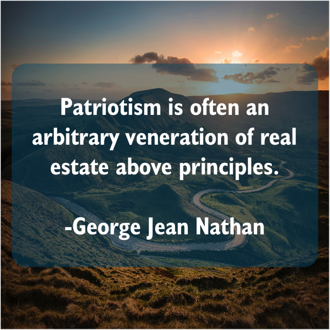 George Jean Nathan George Jean Nathan – Patriotism is often an arbitrary… October 22, 2019 admin “Patriotism is often an arbitrary veneration of real estate above principles.”-George Jean Nathan