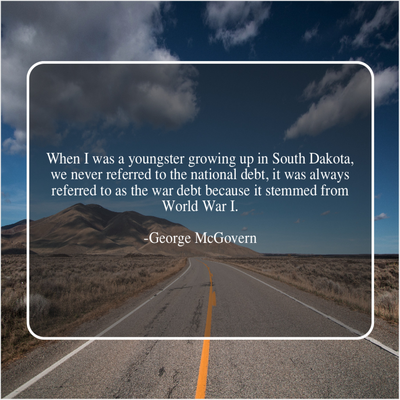 George McGovern George McGovern – When I was a youngster… March 4, 2019 admin “When I was a youngster growing up in South Dakota, we never referred to the national debt, it was always referred to as the war debt because it stemmed from World War I.”-George McGovern