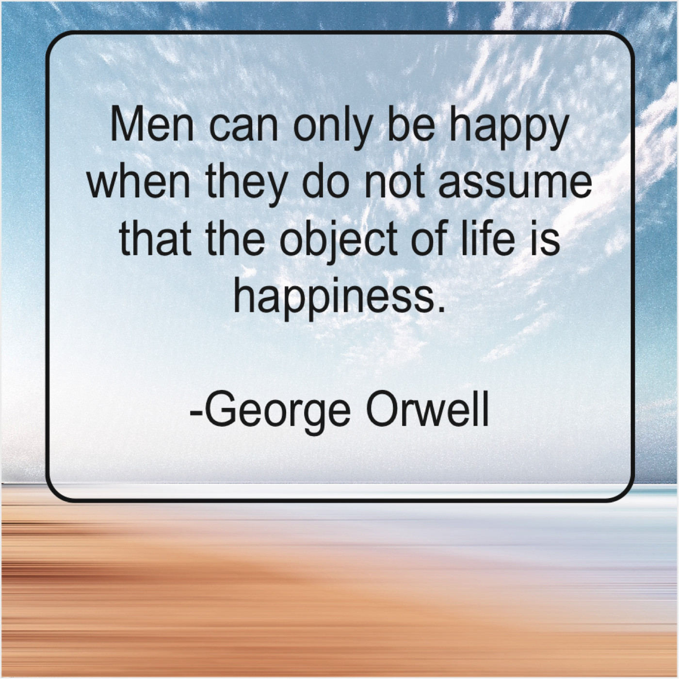 George Orwell George Orwell – Men can only be happy… July 12, 2019 admin “Men can only be happy when they do not assume that the object of life is happiness.”-George Orwell