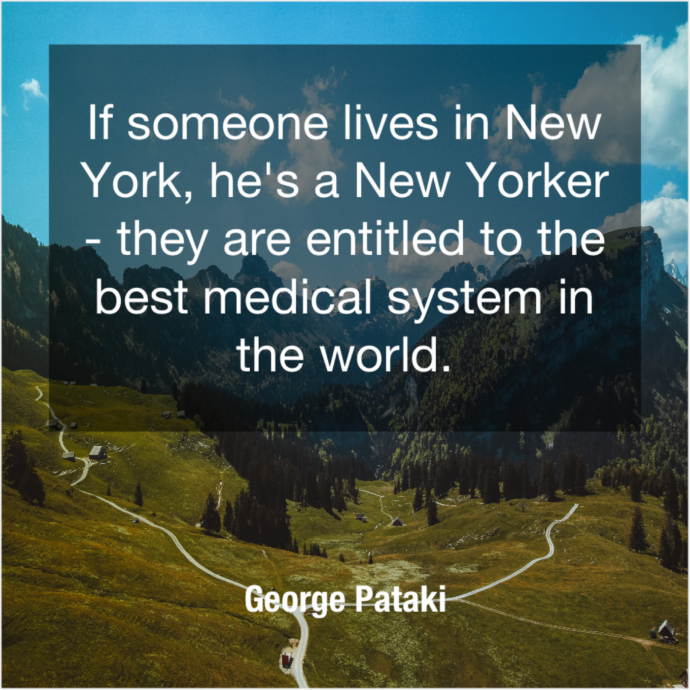 George Pataki George Pataki – If someone lives in New… February 13, 2019 admin “If someone lives in New York, he’s a New Yorker – they are entitled to the best medical system in the world.”-George Pataki