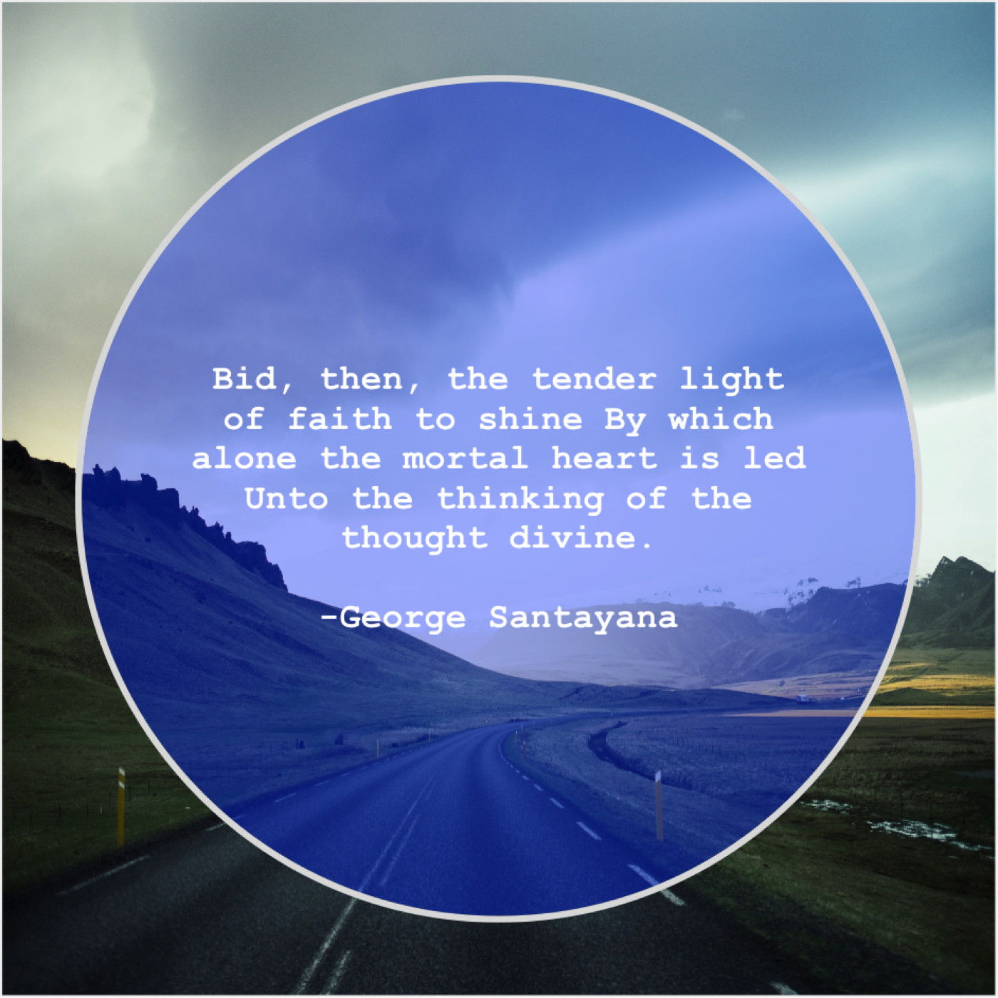 George Santayana George Santayana – Bid, then, the tender light… January 13, 2019 admin “Bid, then, the tender light of faith to shine By which alone the mortal heart is led Unto the thinking of the thought divine.”-George Santayana