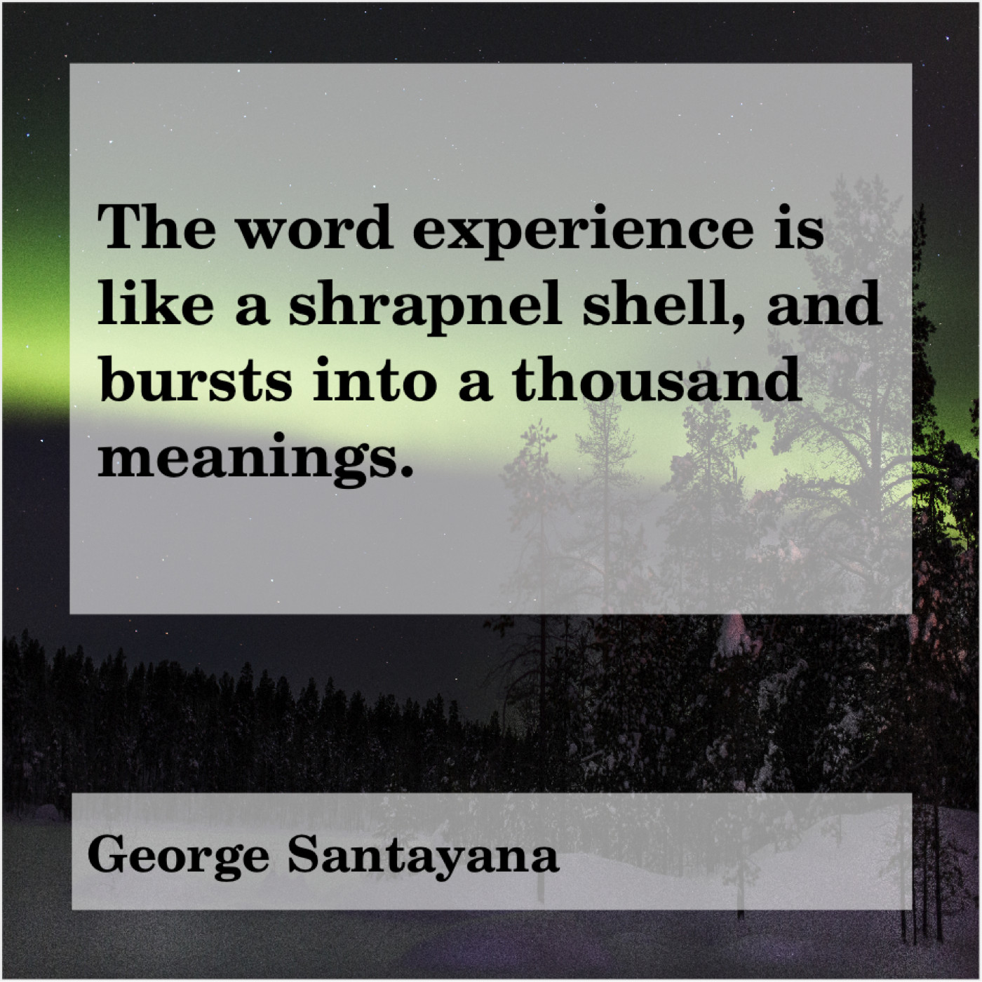 George Santayana George Santayana – The word experience is like… December 3, 2018 admin “The word experience is like a shrapnel shell, and bursts into a thousand meanings.”-George Santayana