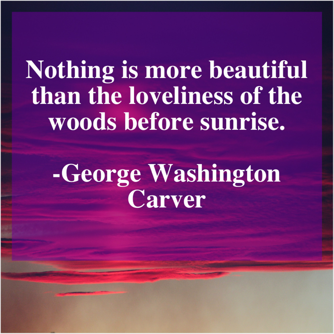 George Washington Carver George Washington Carver – Nothing is more beautiful than… July 30, 2019 admin “Nothing is more beautiful than the loveliness of the woods before sunrise.”-George Washington Carver