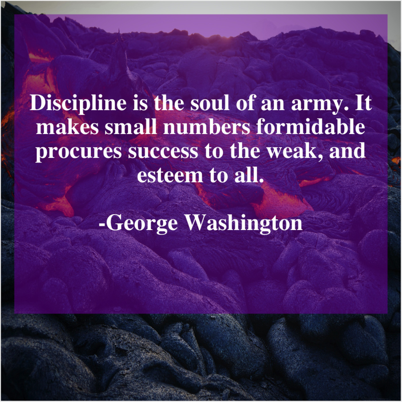 George Washington George Washington – Discipline is the soul of… June 8, 2019 admin “Discipline is the soul of an army. It makes small numbers formidable procures success to the weak, and esteem to all.”-George Washington