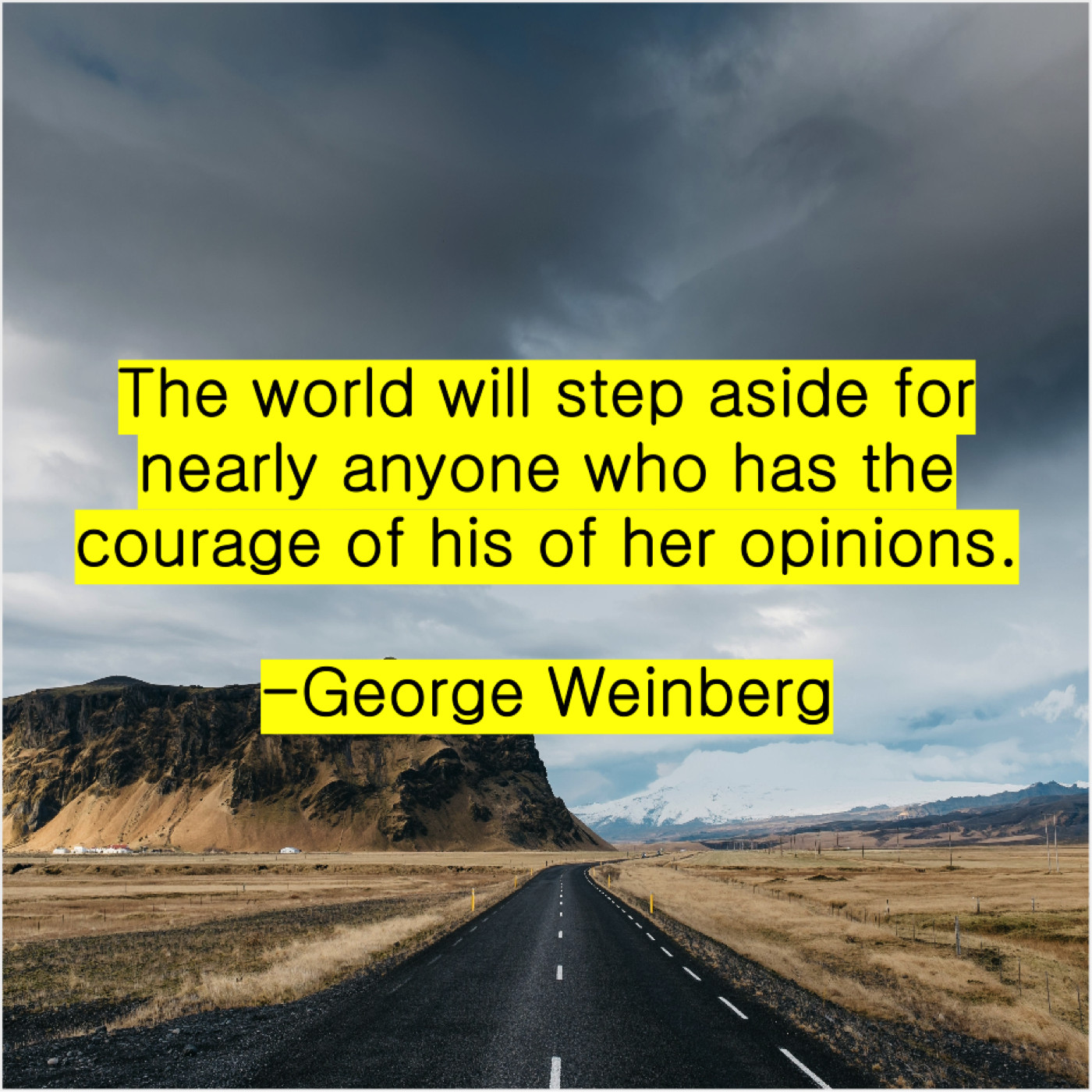 George Weinberg George Weinberg – The world will step aside… July 28, 2019 admin “The world will step aside for nearly anyone who has the courage of his of her opinions.”-George Weinberg