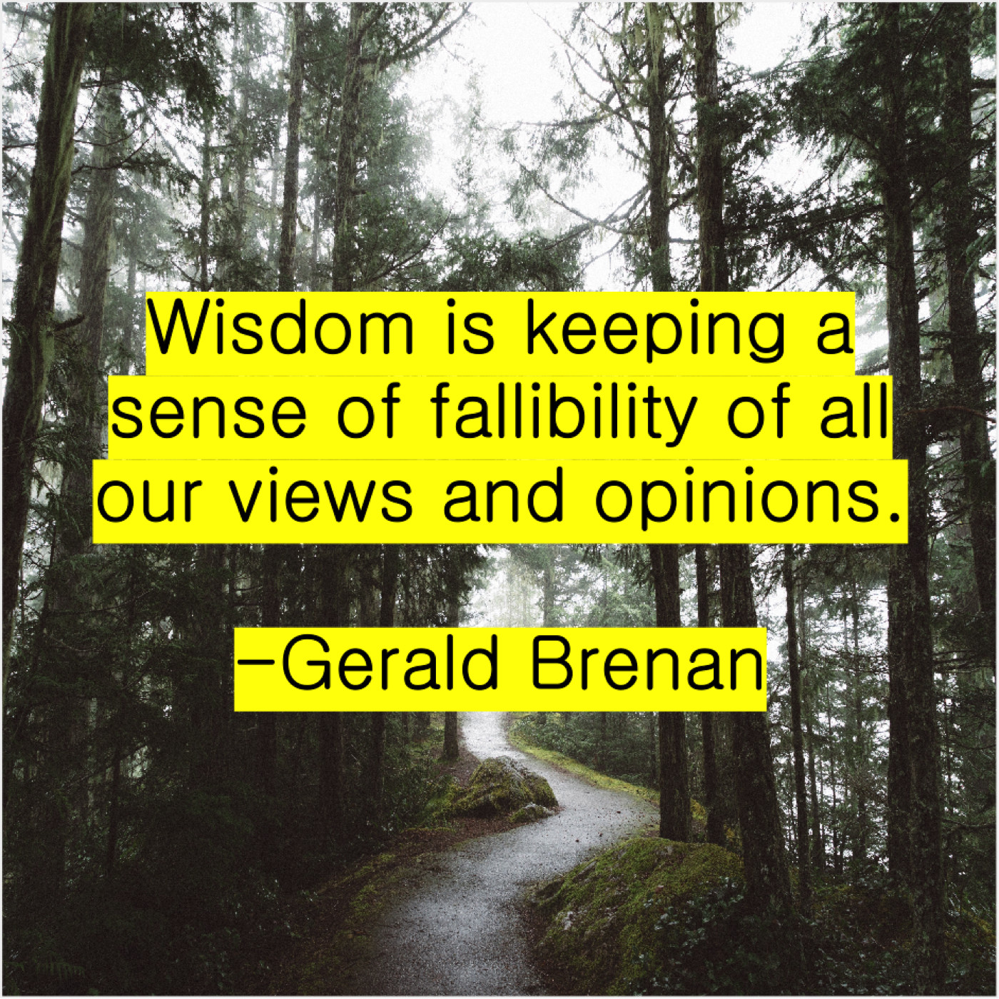Gerald Brenan Gerald Brenan – Wisdom is keeping a sense… September 15, 2019 admin “Wisdom is keeping a sense of fallibility of all our views and opinions.”-Gerald Brenan