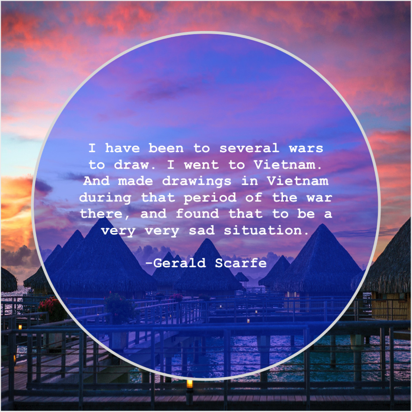 Gerald Scarfe Gerald Scarfe – I have been to several… June 15, 2019 admin “I have been to several wars to draw. I went to Vietnam. And made drawings in Vietnam during that period of the war there, and found that to be a very very sad situation.”-Gerald Scarfe