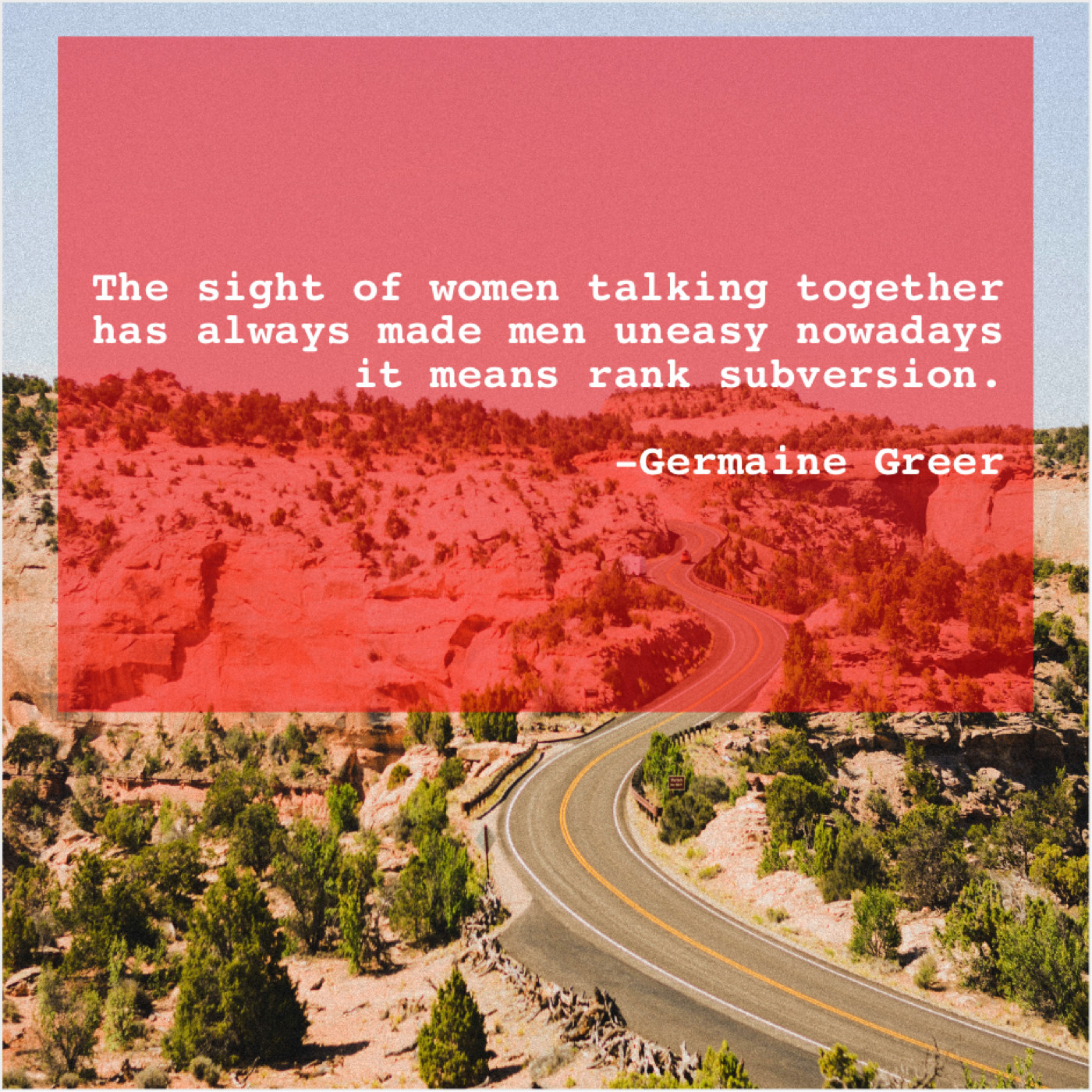 Germaine Greer Germaine Greer – The sight of women talking… March 26, 2019 admin “The sight of women talking together has always made men uneasy nowadays it means rank subversion.”-Germaine Greer