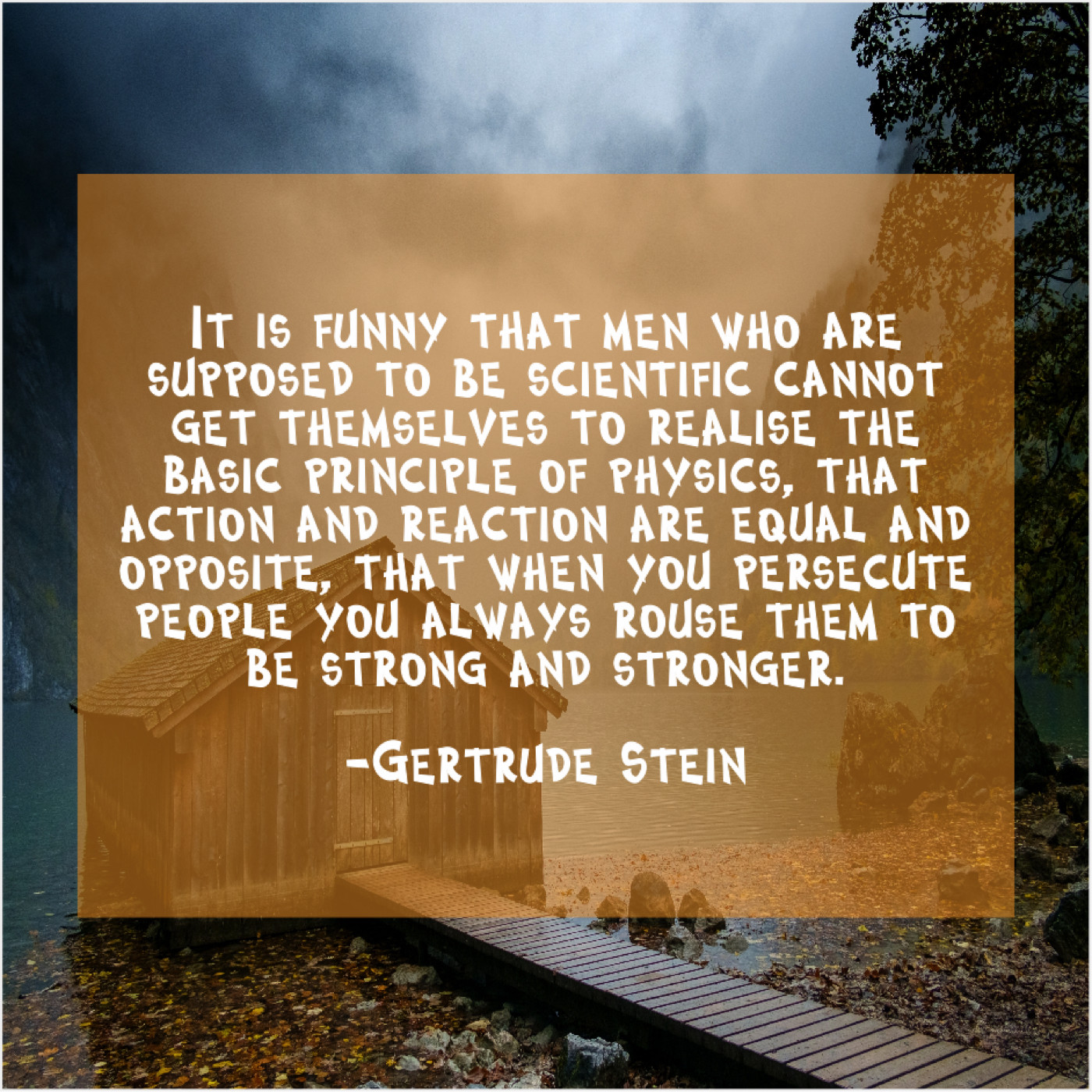 “It is funny that men who are supposed to be scientific cannot get themselves to realise the basic principle of physics, that action and reaction are equal and opposite, that when you persecute people you always rouse them to be strong and stronger.”