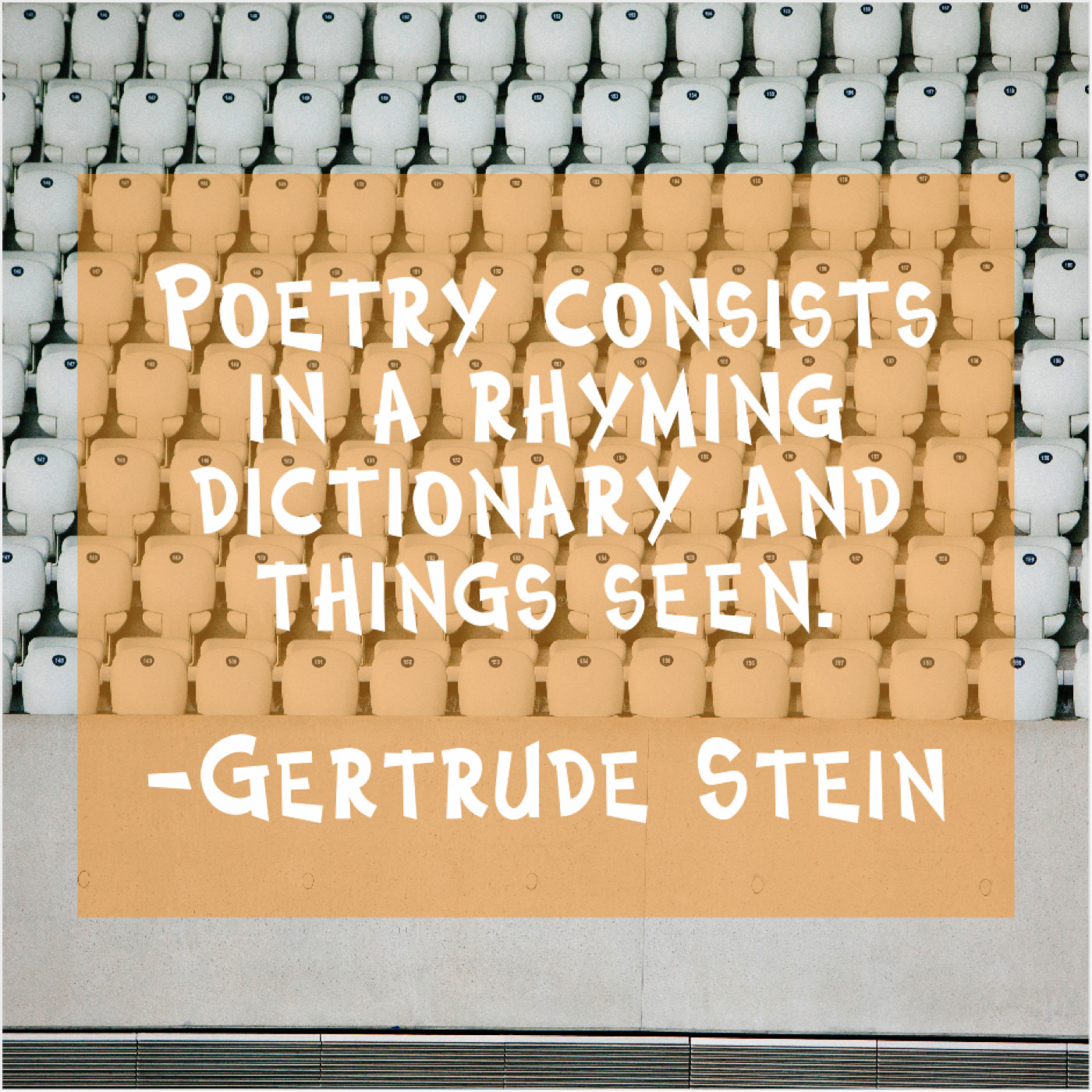 Gertrude Stein Gertrude Stein – Poetry consists in a rhyming… May 6, 2019 admin “Poetry consists in a rhyming dictionary and things seen.”-Gertrude Stein