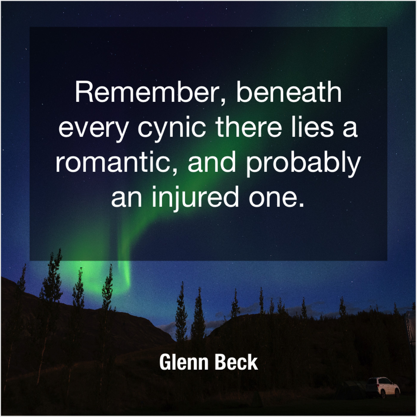 Glenn Beck Glenn Beck – Remember, beneath every cynic there… October 6, 2019 admin “Remember, beneath every cynic there lies a romantic, and probably an injured one.”-Glenn Beck