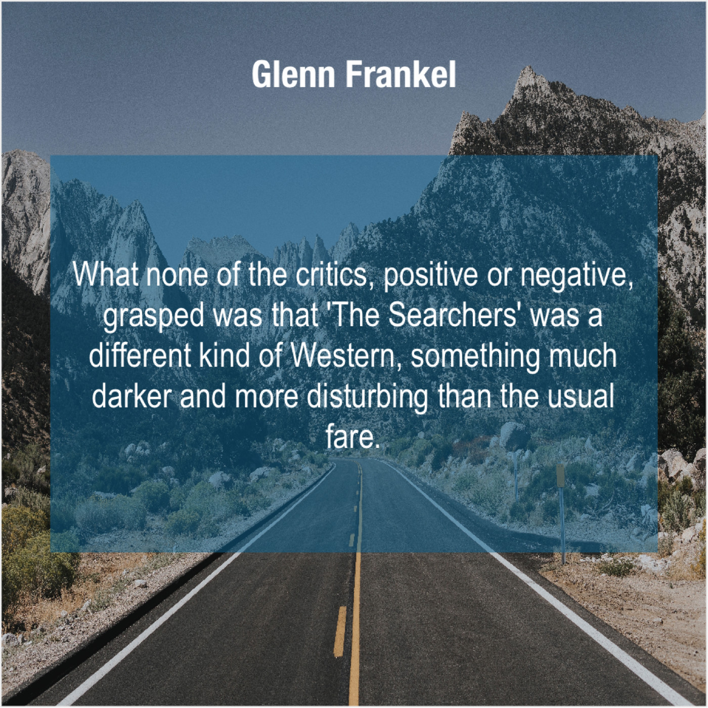 Glenn Frankel Glenn Frankel – What none of the critics… April 26, 2019 admin “What none of the critics, positive or negative, grasped was that ‘The Searchers’ was a different kind of Western, something much darker and more disturbing than the usual fare.”-Glenn Frankel