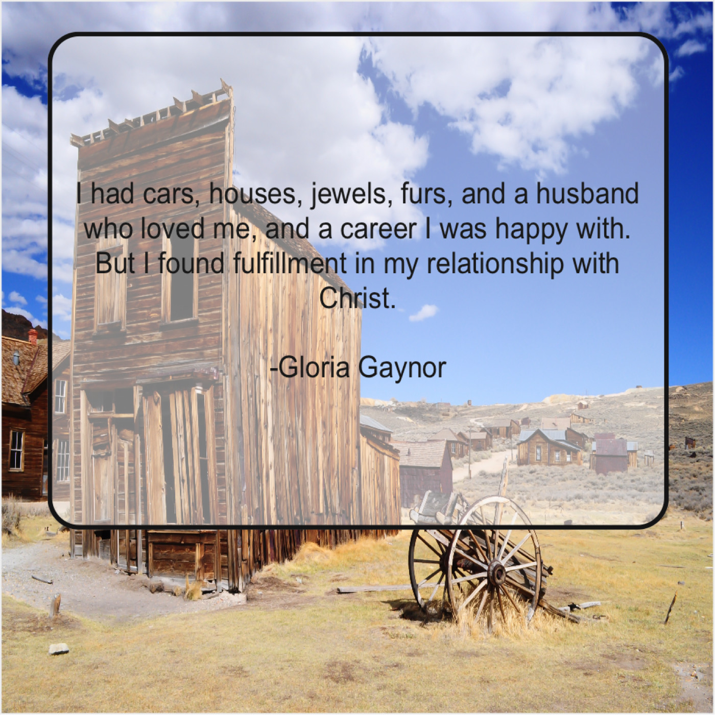Gloria Gaynor Gloria Gaynor – I had cars, houses, jewels… June 19, 2019 admin “I had cars, houses, jewels, furs, and a husband who loved me, and a career I was happy with. But I found fulfillment in my relationship with Christ.”-Gloria Gaynor