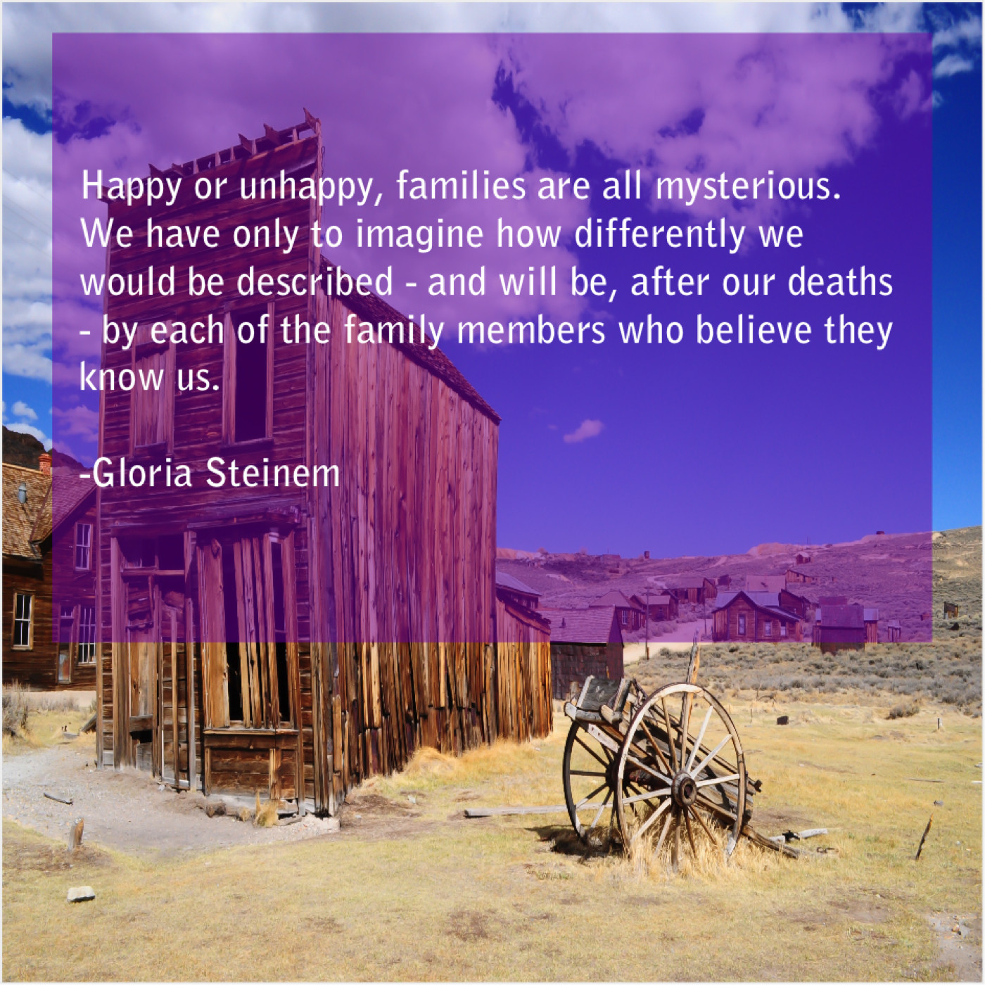 Gloria Steinem Gloria Steinem – Happy or unhappy, families are… February 13, 2019 admin “Happy or unhappy, families are all mysterious. We have only to imagine how differently we would be described – and will be, after our deaths – by each of the family members who believe they know us.”-Gloria Steinem