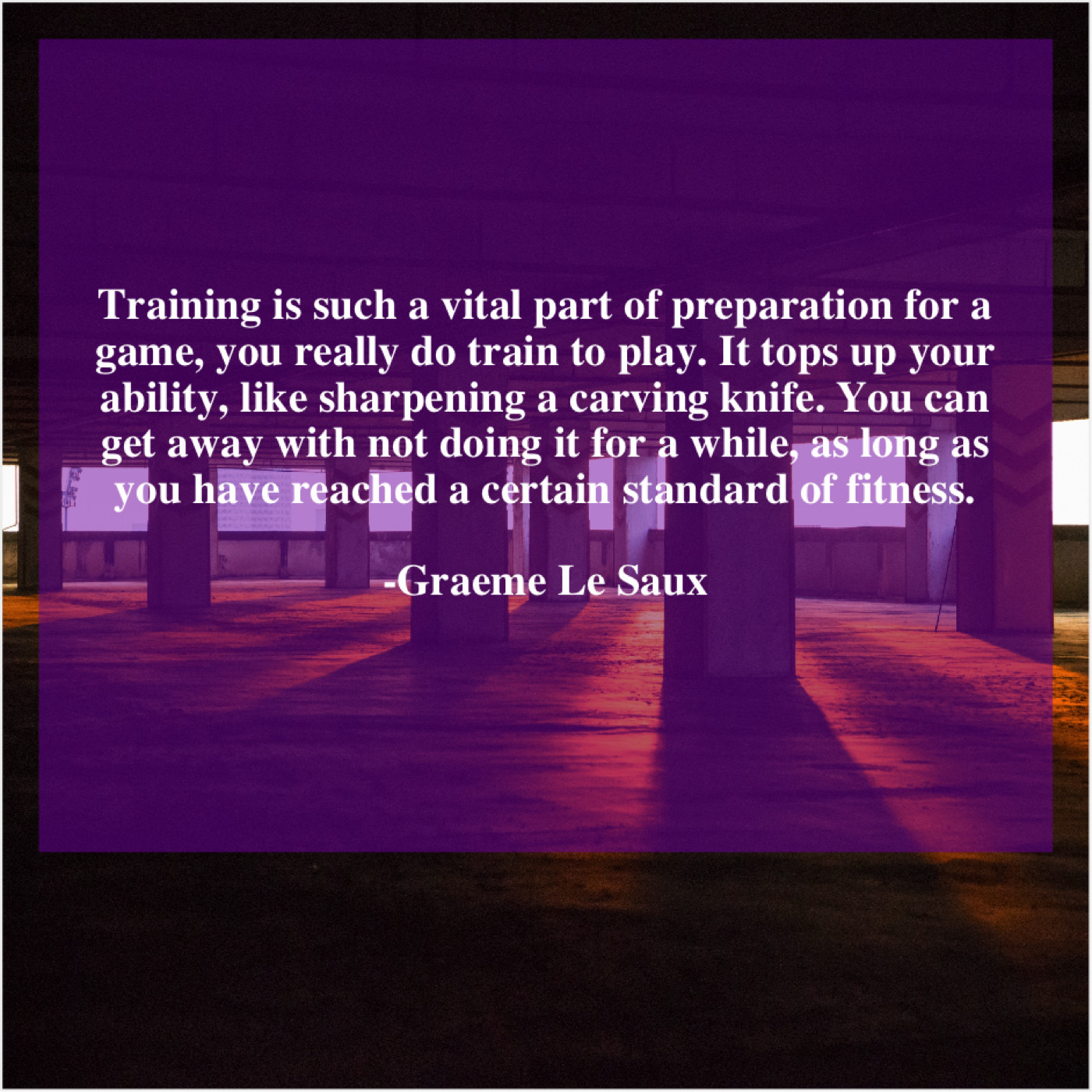 “Training is such a vital part of preparation for a game, you really do train to play. It tops up your ability, like sharpening a carving knife. You can get away with not doing it for a while, as long as you have reached a certain standard of fitness.”