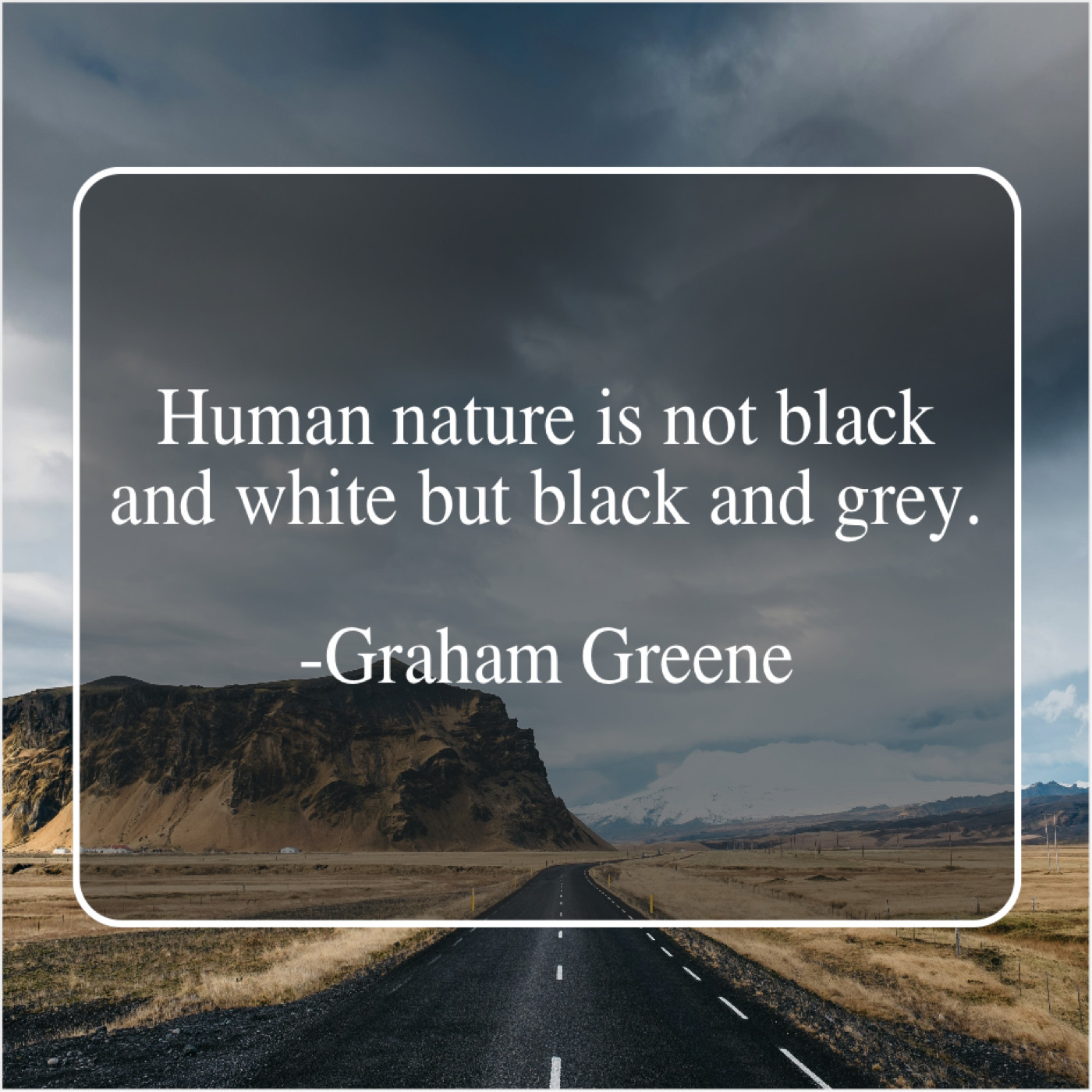 Graham Greene Graham Greene – Human nature is not black… April 14, 2019 admin “Human nature is not black and white but black and grey.”-Graham Greene