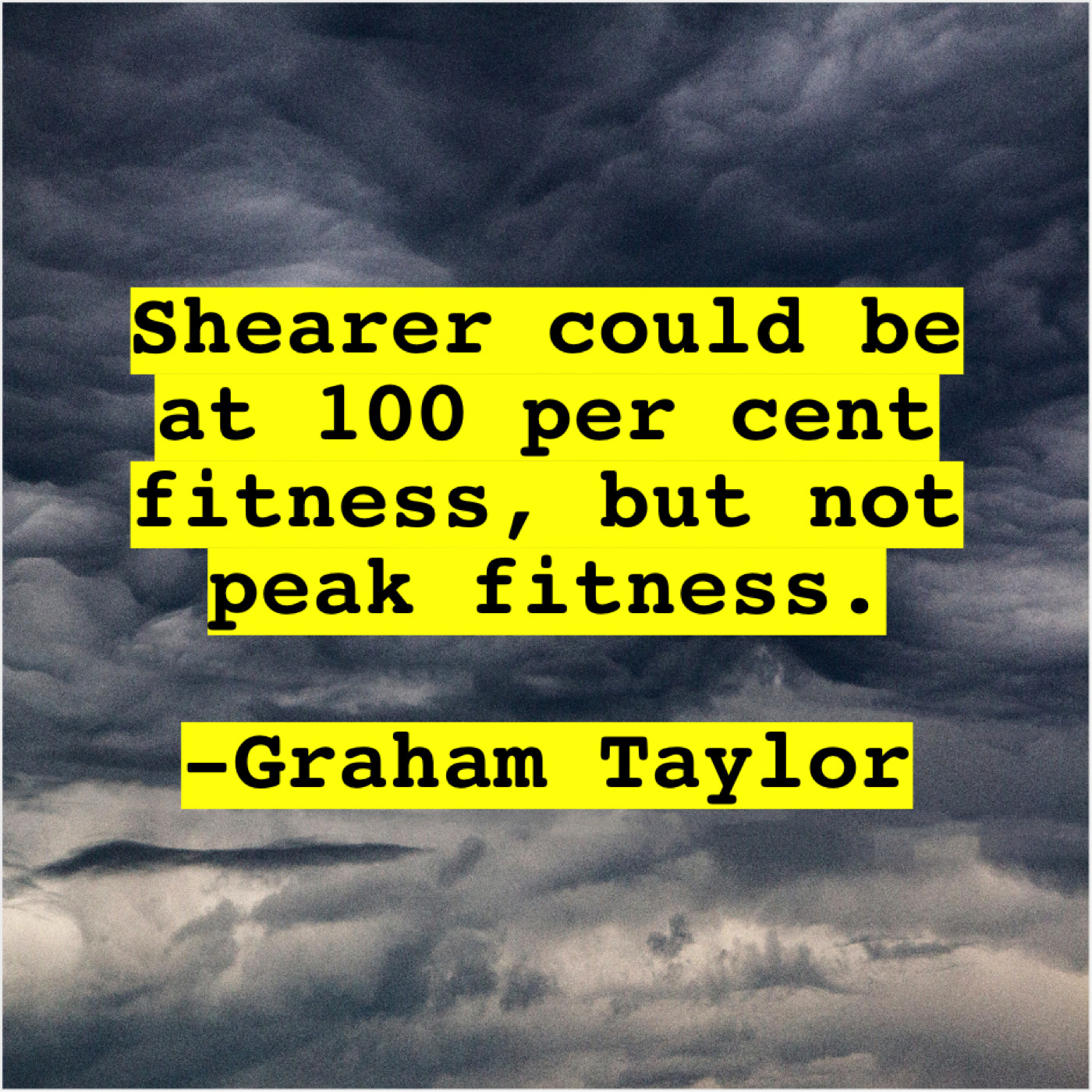 Graham Taylor Graham Taylor – Shearer could be at 100… October 11, 2019 admin “Shearer could be at 100 per cent fitness, but not peak fitness.”-Graham Taylor