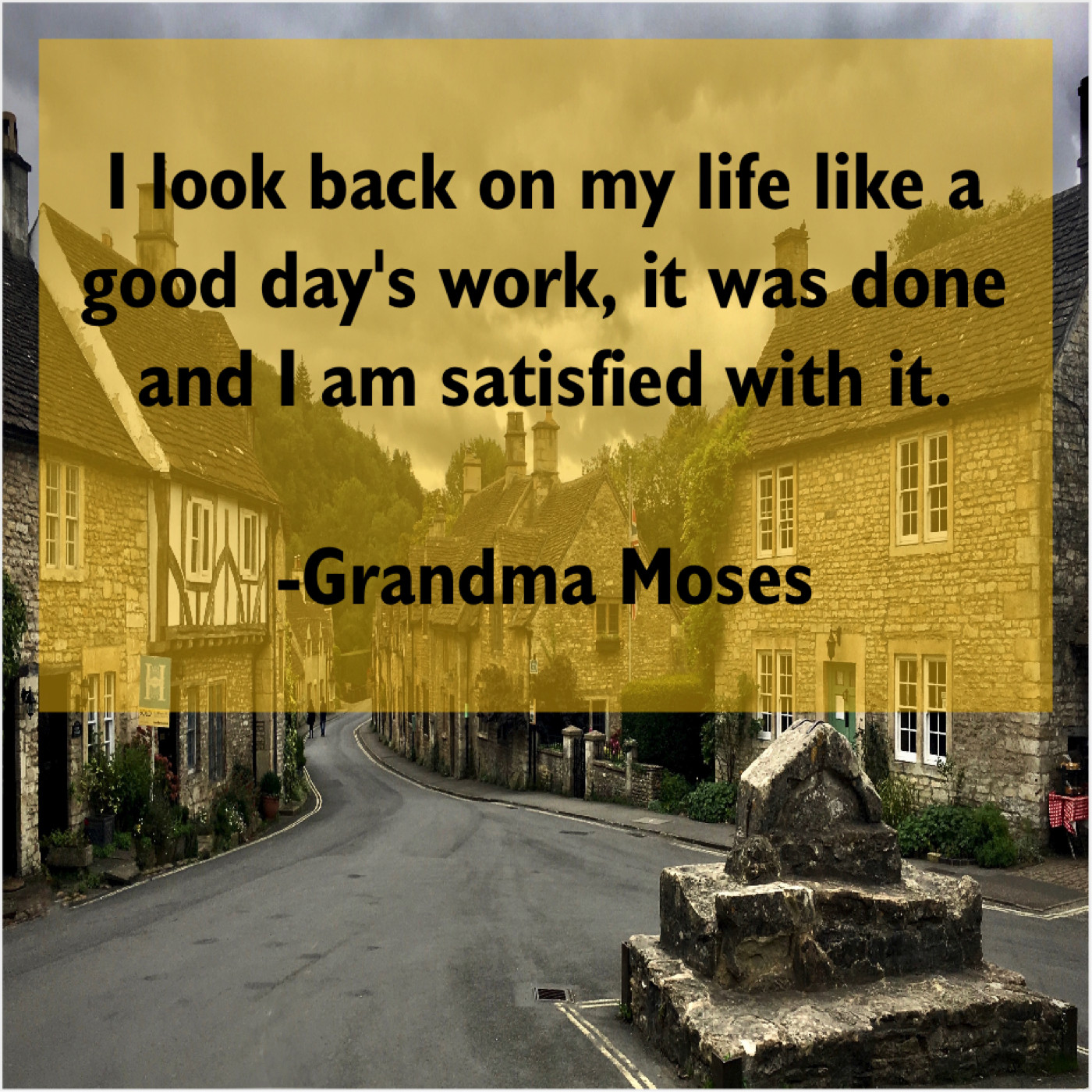 Grandma Moses Grandma Moses – I look back on my… May 18, 2019 admin “I look back on my life like a good day’s work, it was done and I am satisfied with it.”-Grandma Moses