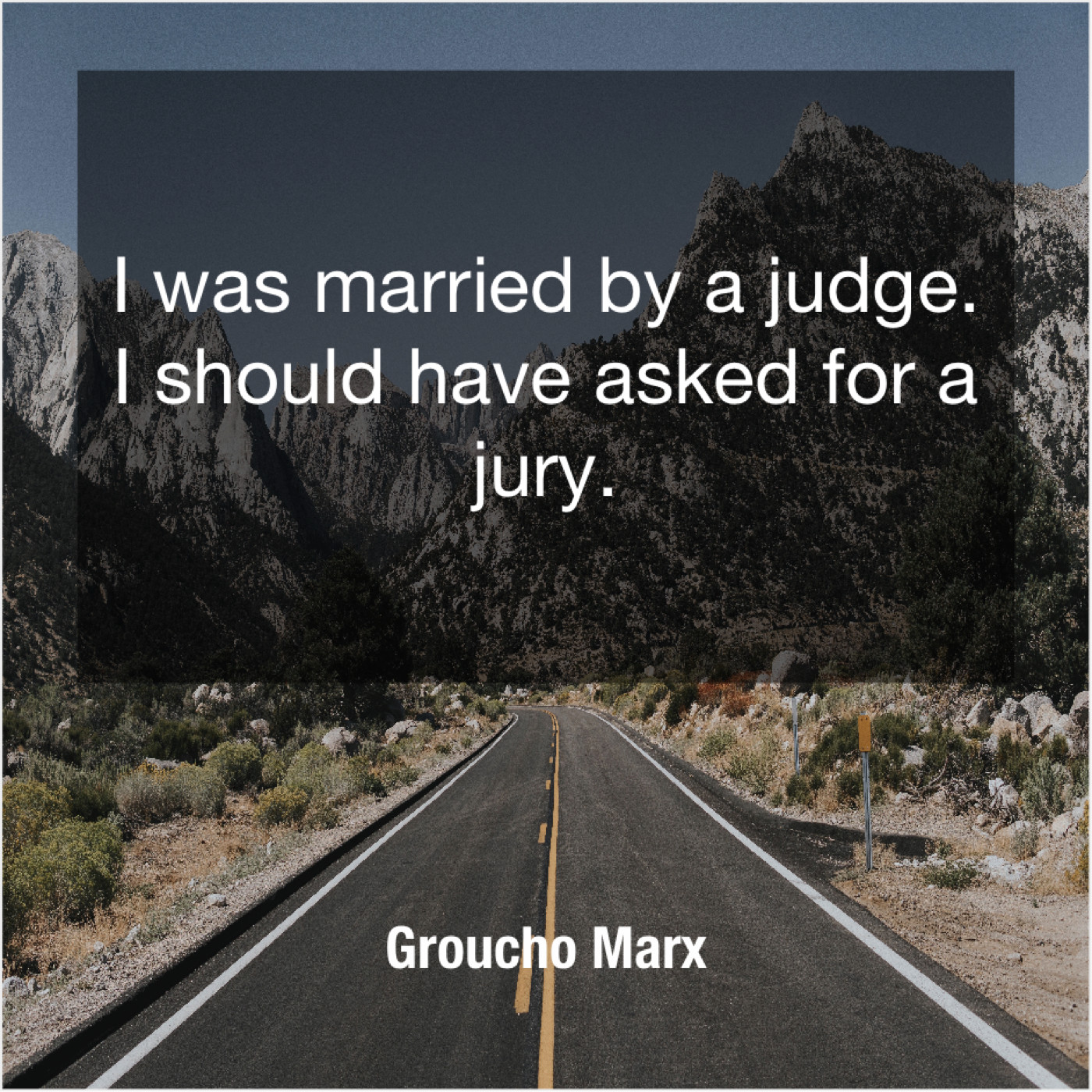 Groucho Marx Groucho Marx – I was married by a… August 23, 2019 admin “I was married by a judge. I should have asked for a jury.”-Groucho Marx