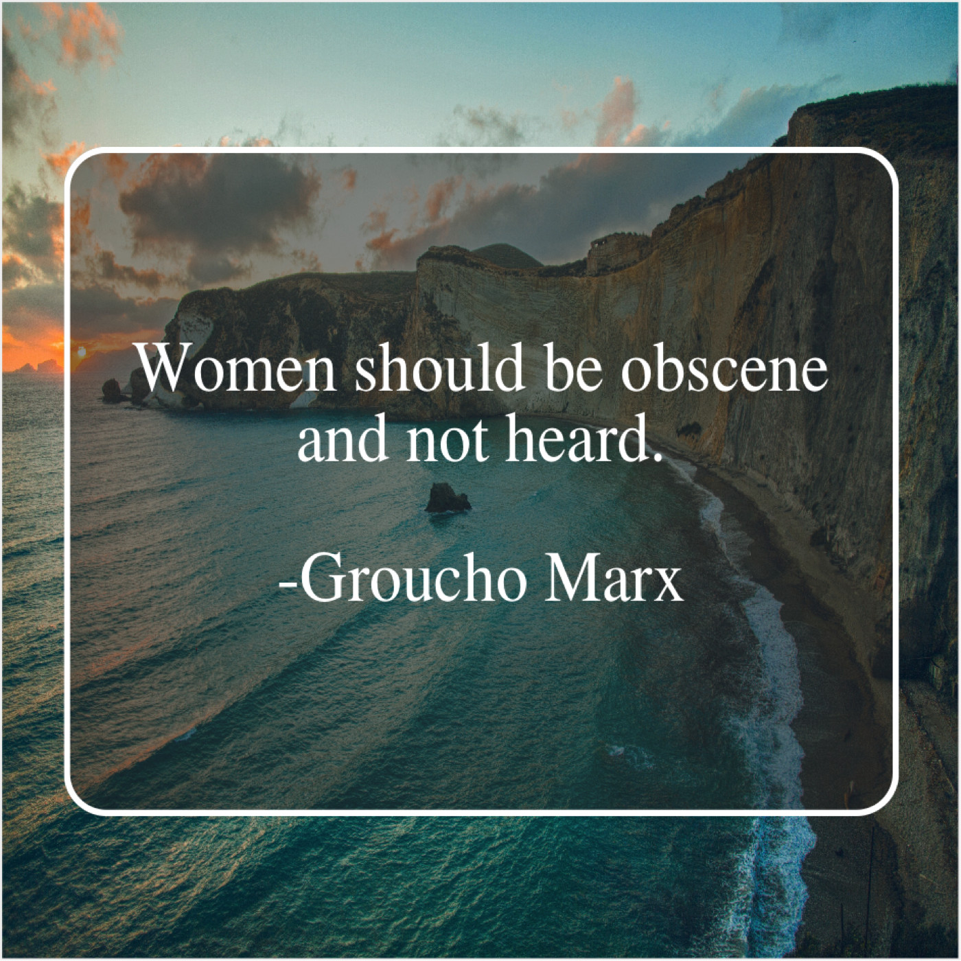 Groucho Marx Groucho Marx – Women should be obscene and… February 1, 2019 admin “Women should be obscene and not heard.”-Groucho Marx