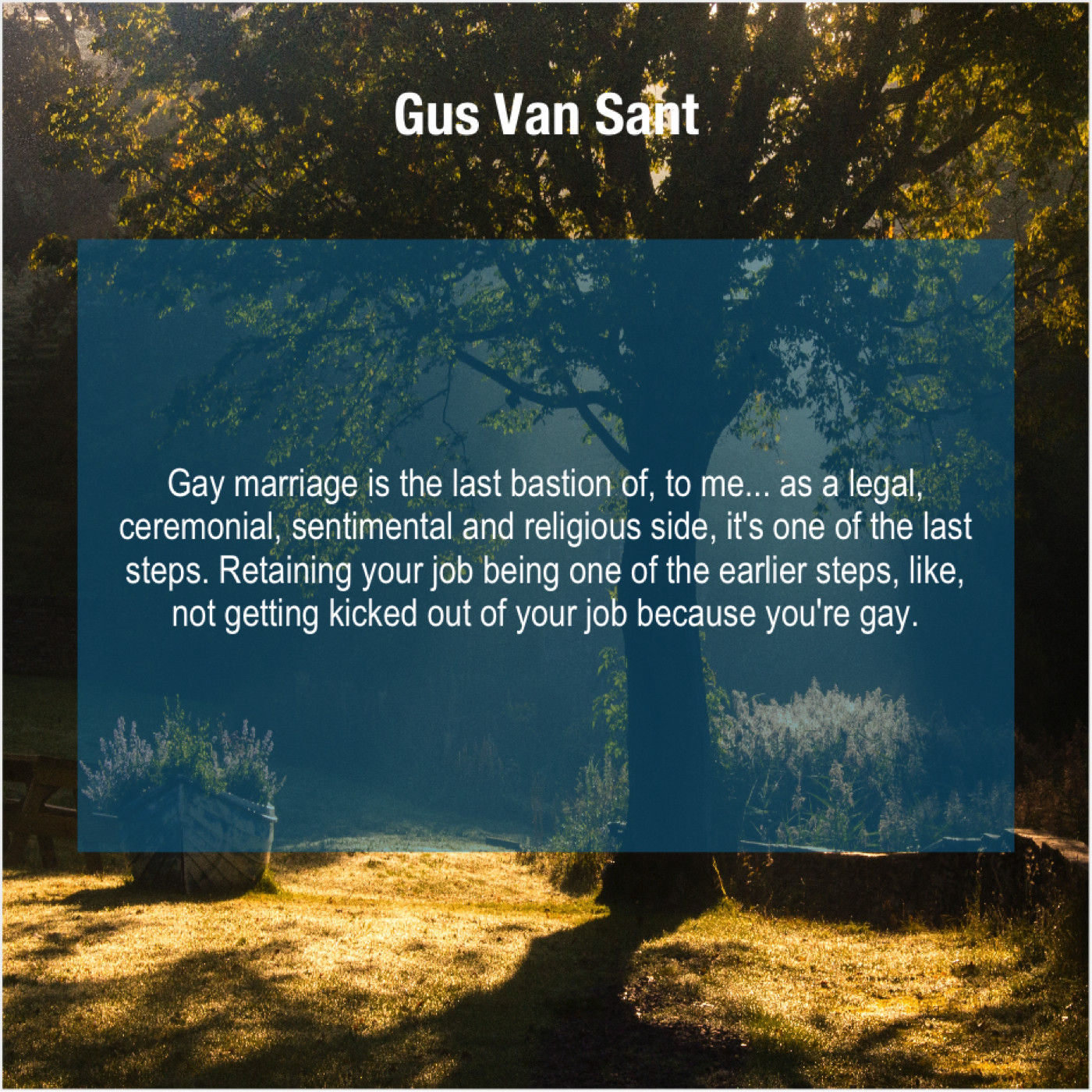 “Gay marriage is the last bastion of, to me… as a legal, ceremonial, sentimental and religious side, it’s one of the last steps. Retaining your job being one of the earlier steps, like, not getting kicked out of your job because you’re gay.”