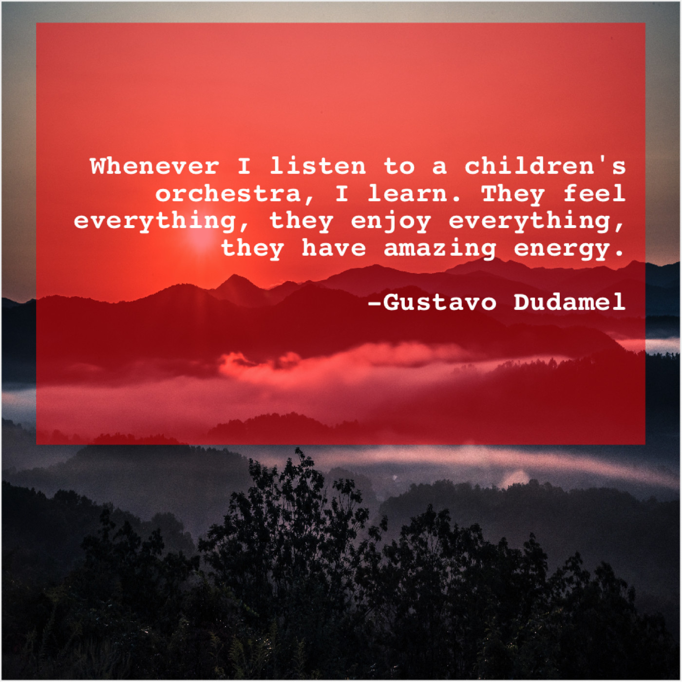 Gustavo Dudamel Gustavo Dudamel – Whenever I listen to a… December 26, 2018 admin “Whenever I listen to a children’s orchestra, I learn. They feel everything, they enjoy everything, they have amazing energy.”-Gustavo Dudamel
