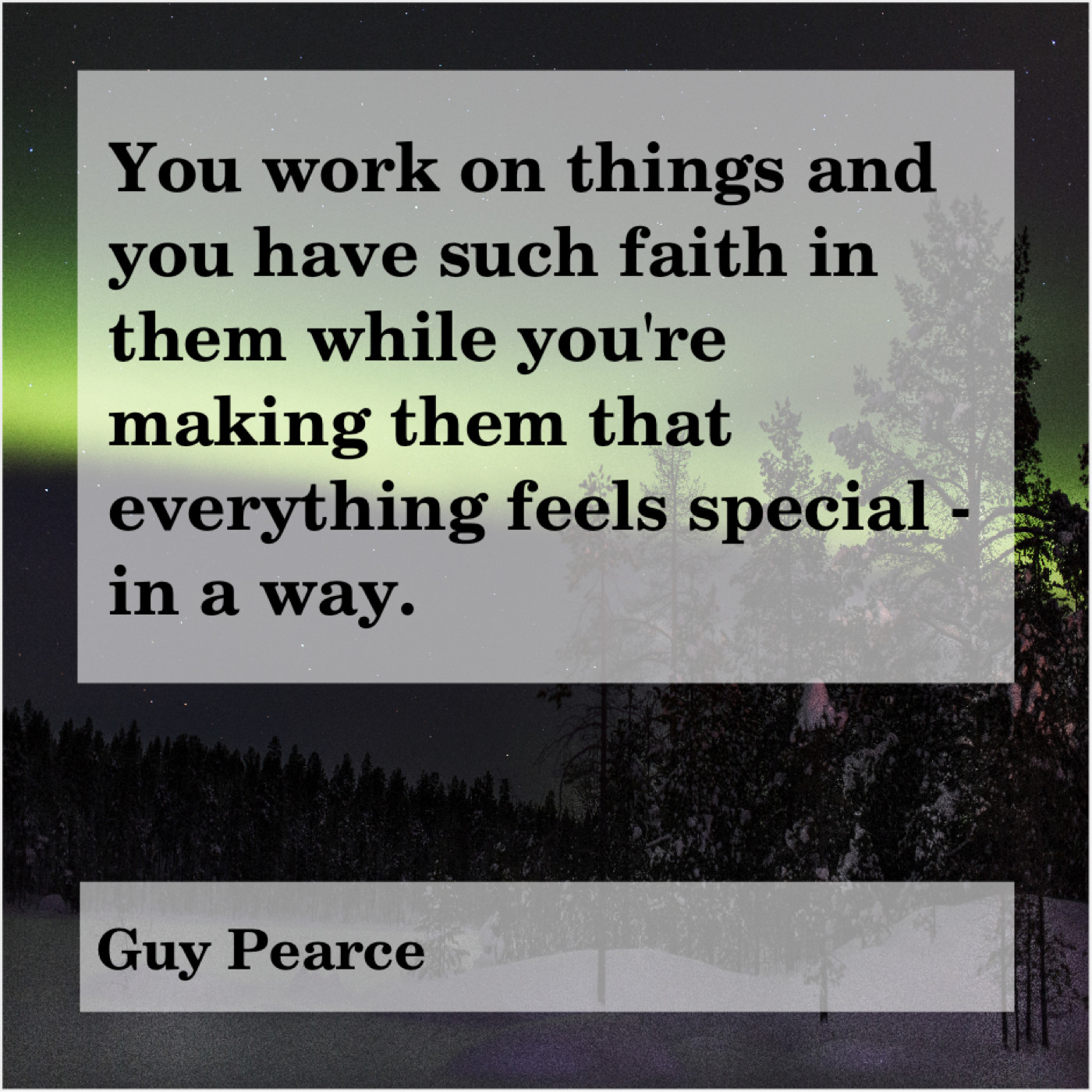 Guy Pearce Guy Pearce – You work on things and… January 2, 2019 admin “You work on things and you have such faith in them while you’re making them that everything feels special – in a way.”-Guy Pearce