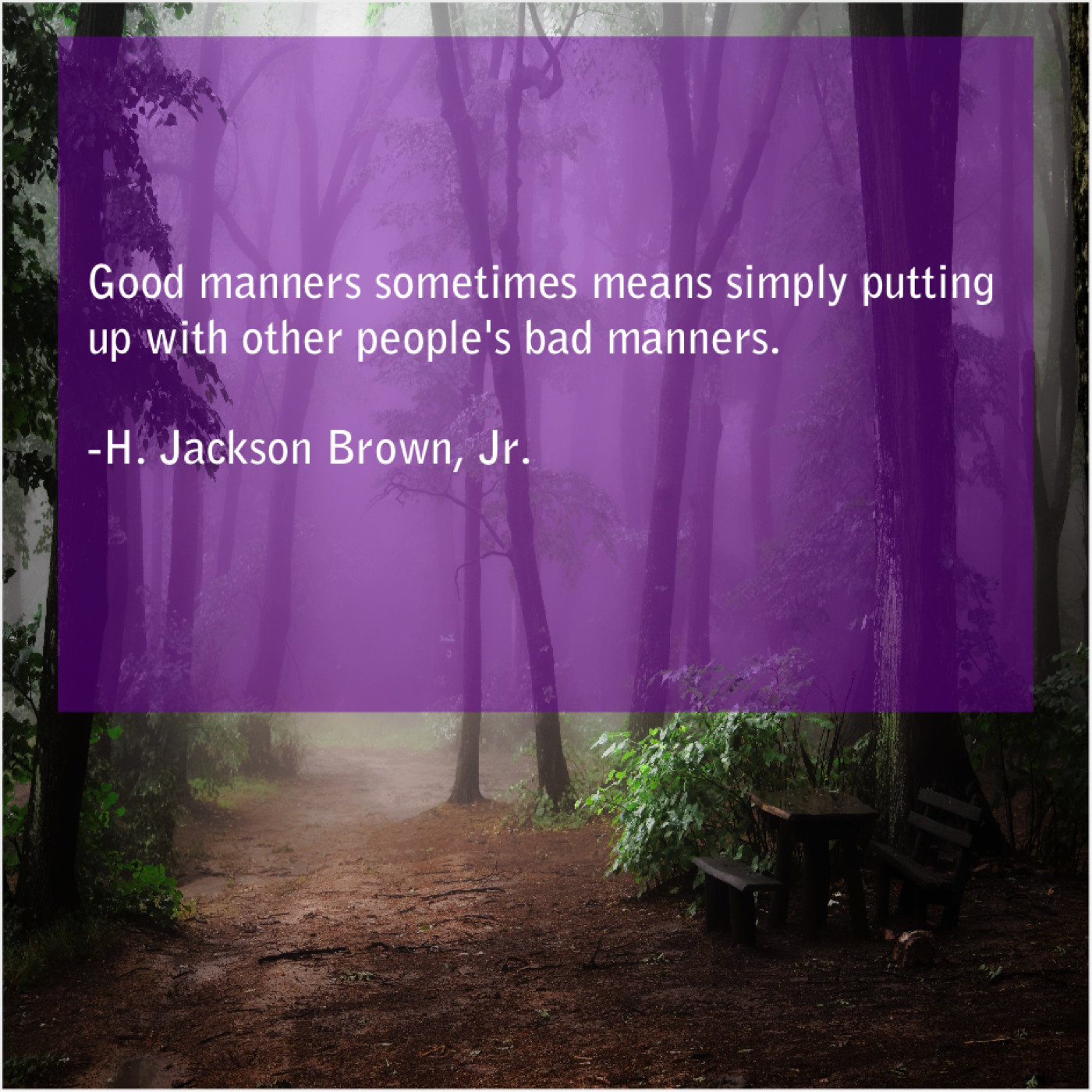 H. Jackson Brown, Jr. H. Jackson Brown, Jr. – Good manners sometimes means simply… February 1, 2019 admin “Good manners sometimes means simply putting up with other people’s bad manners.”-H. Jackson Brown, Jr.