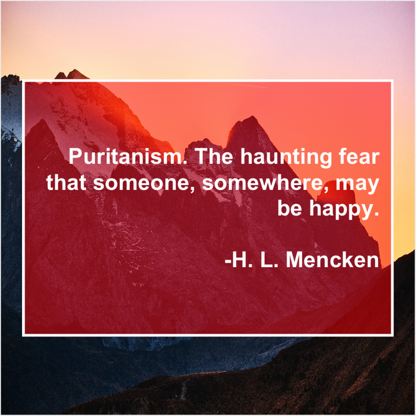H. L. Mencken H. L. Mencken – Puritanism. The haunting fear that… April 21, 2019 admin “Puritanism. The haunting fear that someone, somewhere, may be happy.”-H. L. Mencken