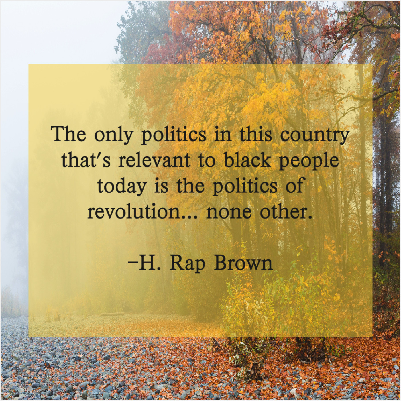 H. Rap Brown H. Rap Brown – The only politics in this… August 14, 2019 admin “The only politics in this country that’s relevant to black people today is the politics of revolution… none other.”-H. Rap Brown