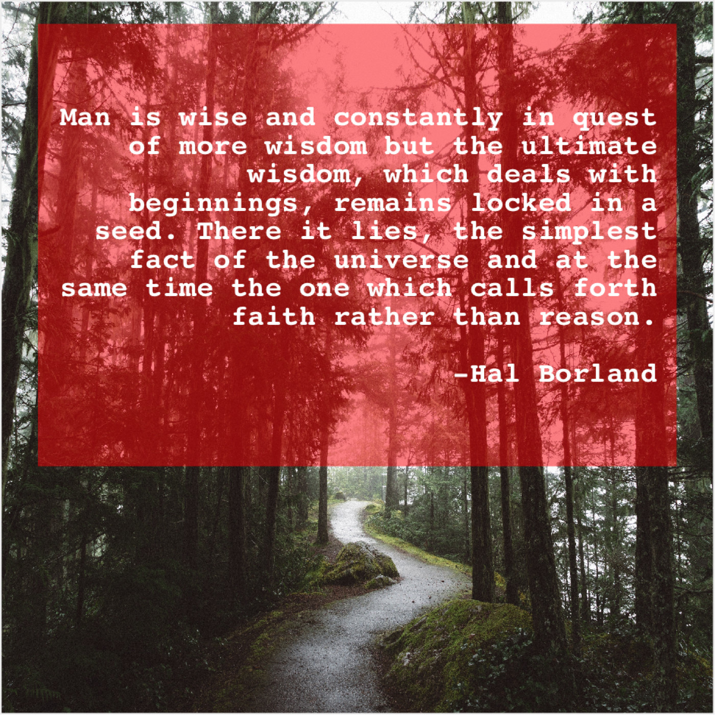 “Man is wise and constantly in quest of more wisdom but the ultimate wisdom, which deals with beginnings, remains locked in a seed. There it lies, the simplest fact of the universe and at the same time the one which calls forth faith rather than reason.”