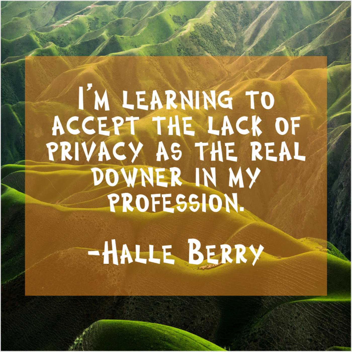 Halle Berry Halle Berry – I’m learning to accept the… March 9, 2019 admin “I’m learning to accept the lack of privacy as the real downer in my profession.”-Halle Berry