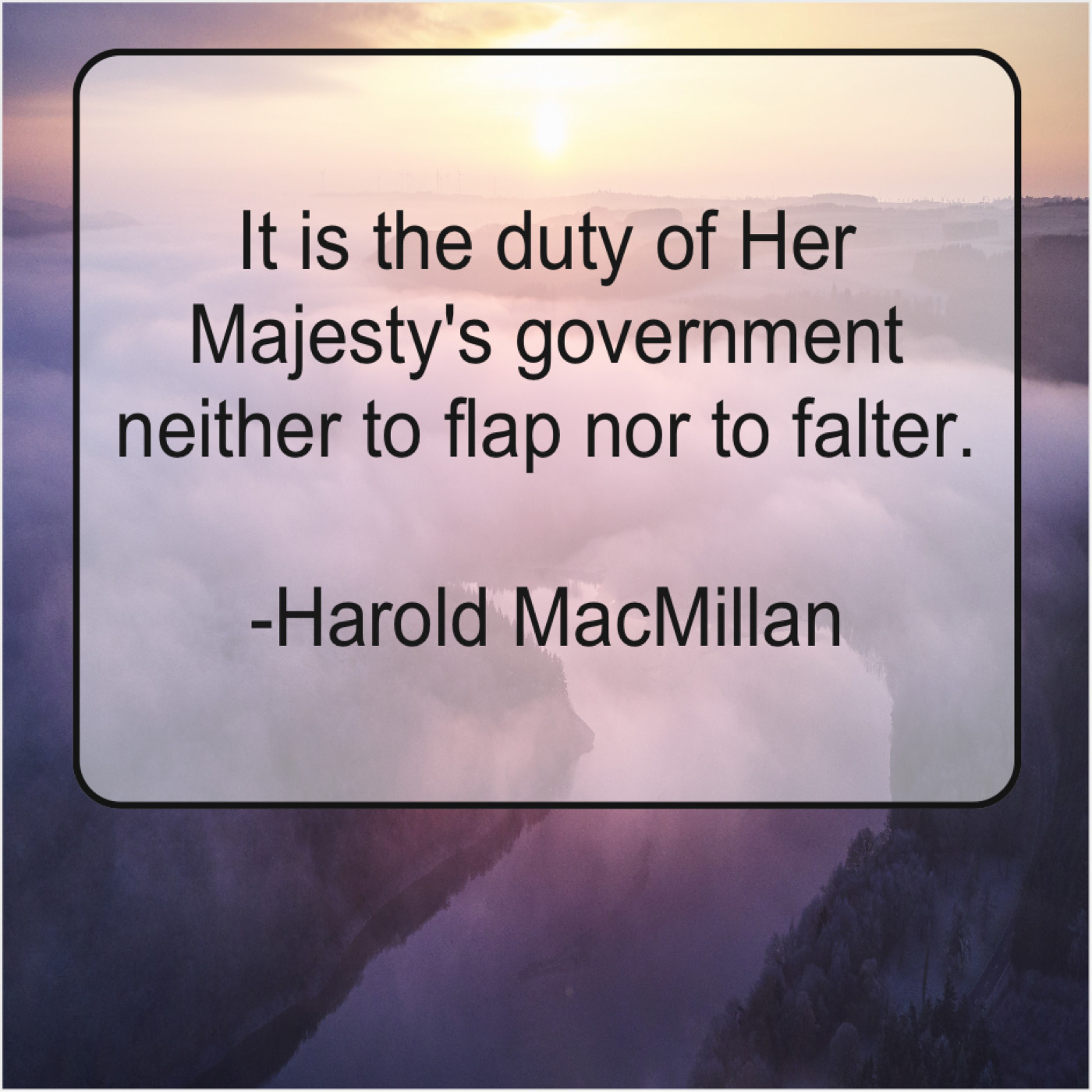 Harold MacMillan Harold MacMillan – It is the duty of… January 28, 2019 admin “It is the duty of Her Majesty’s government neither to flap nor to falter.”-Harold MacMillan