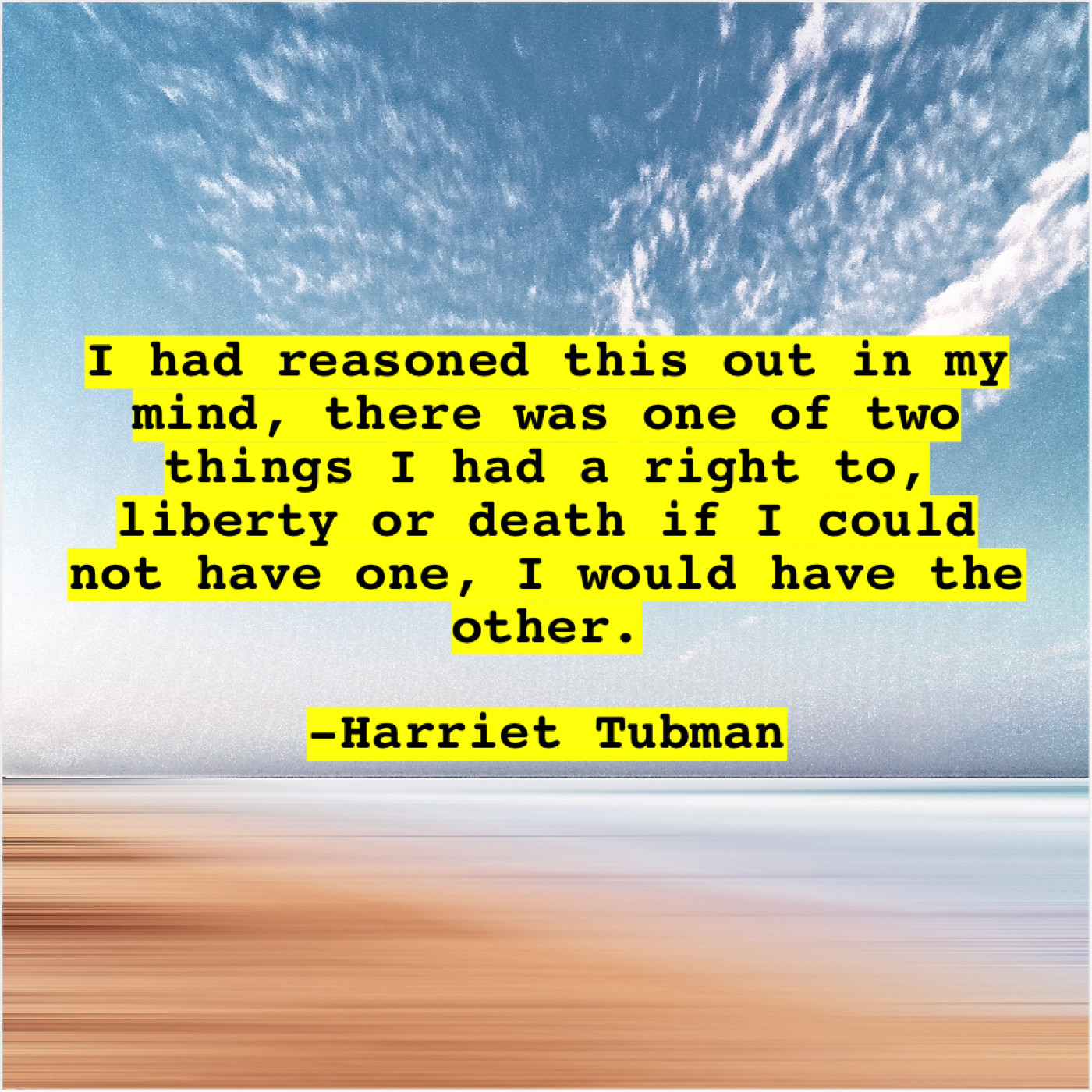 Harriet Tubman Harriet Tubman – I had reasoned this out… November 30, 2018 admin “I had reasoned this out in my mind, there was one of two things I had a right to, liberty or death if I could not have one, I would have the other.”-Harriet Tubman