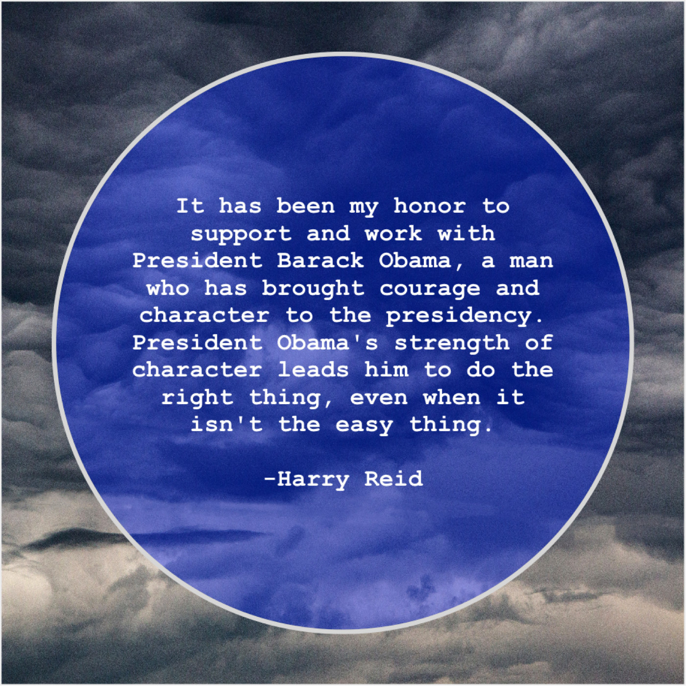 “It has been my honor to support and work with President Barack Obama, a man who has brought courage and character to the presidency. President Obama’s strength of character leads him to do the right thing, even when it isn’t the easy thing.”