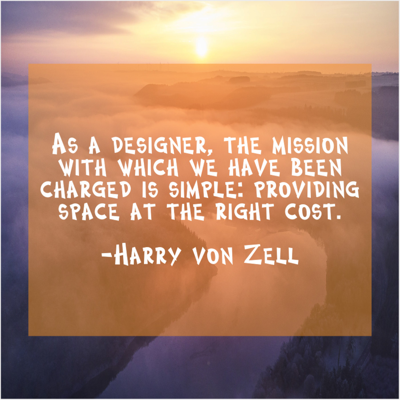 Harry von Zell Harry von Zell – As a designer, the mission… December 7, 2018 admin “As a designer, the mission with which we have been charged is simple: providing space at the right cost.”-Harry von Zell