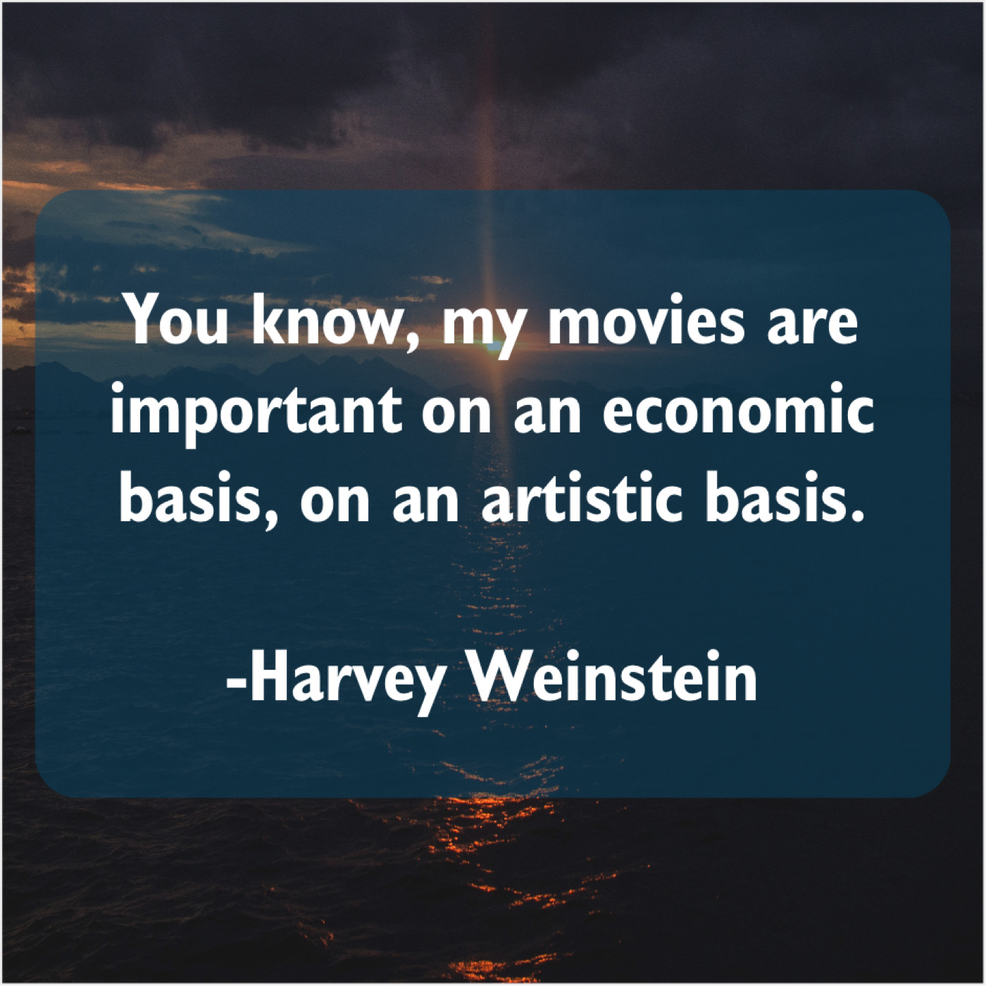 Harvey Weinstein Harvey Weinstein – You know, my movies are… May 1, 2019 admin “You know, my movies are important on an economic basis, on an artistic basis.”-Harvey Weinstein