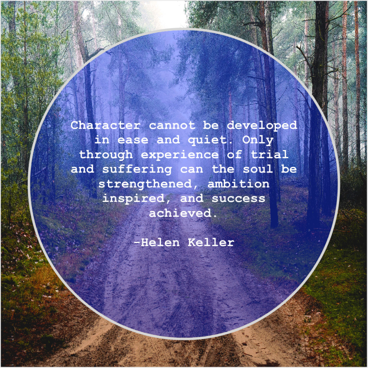 Helen Keller Helen Keller – Character cannot be developed in… October 22, 2019 admin “Character cannot be developed in ease and quiet. Only through experience of trial and suffering can the soul be strengthened, ambition inspired, and success achieved.”-Helen Keller