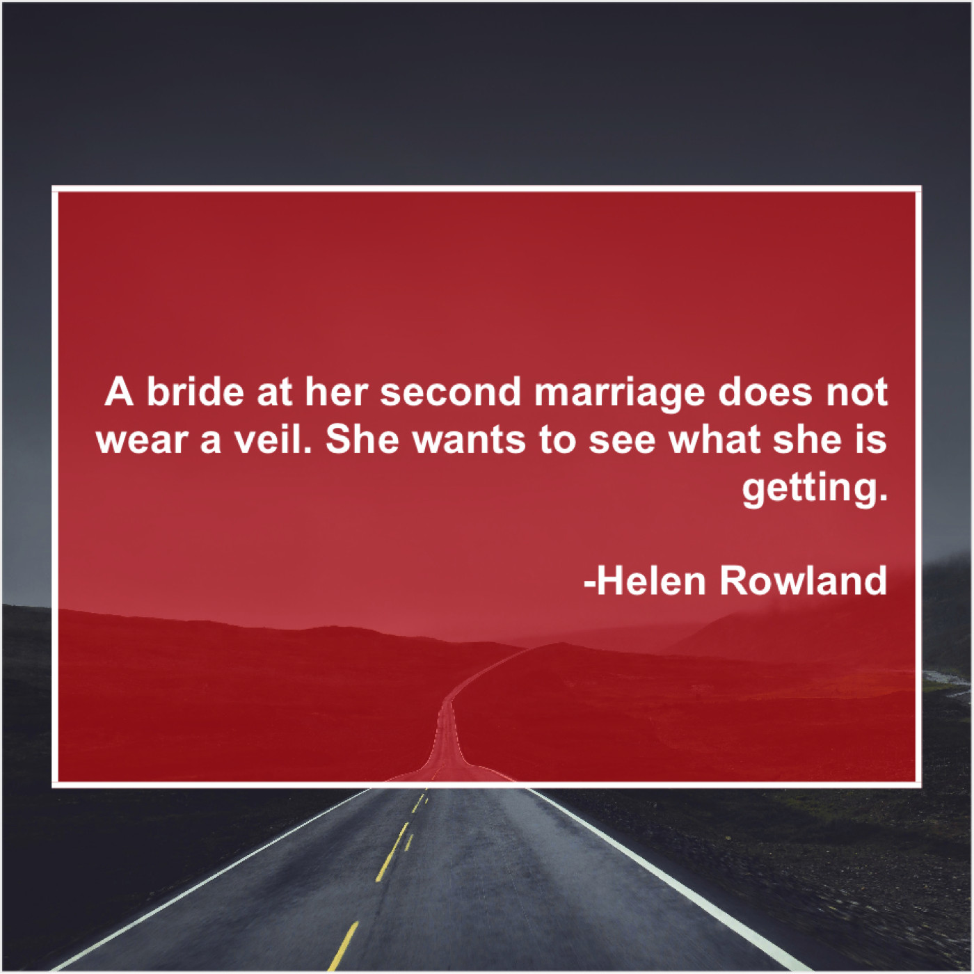 Helen Rowland Helen Rowland – A bride at her second… July 15, 2019 admin “A bride at her second marriage does not wear a veil. She wants to see what she is getting.”-Helen Rowland