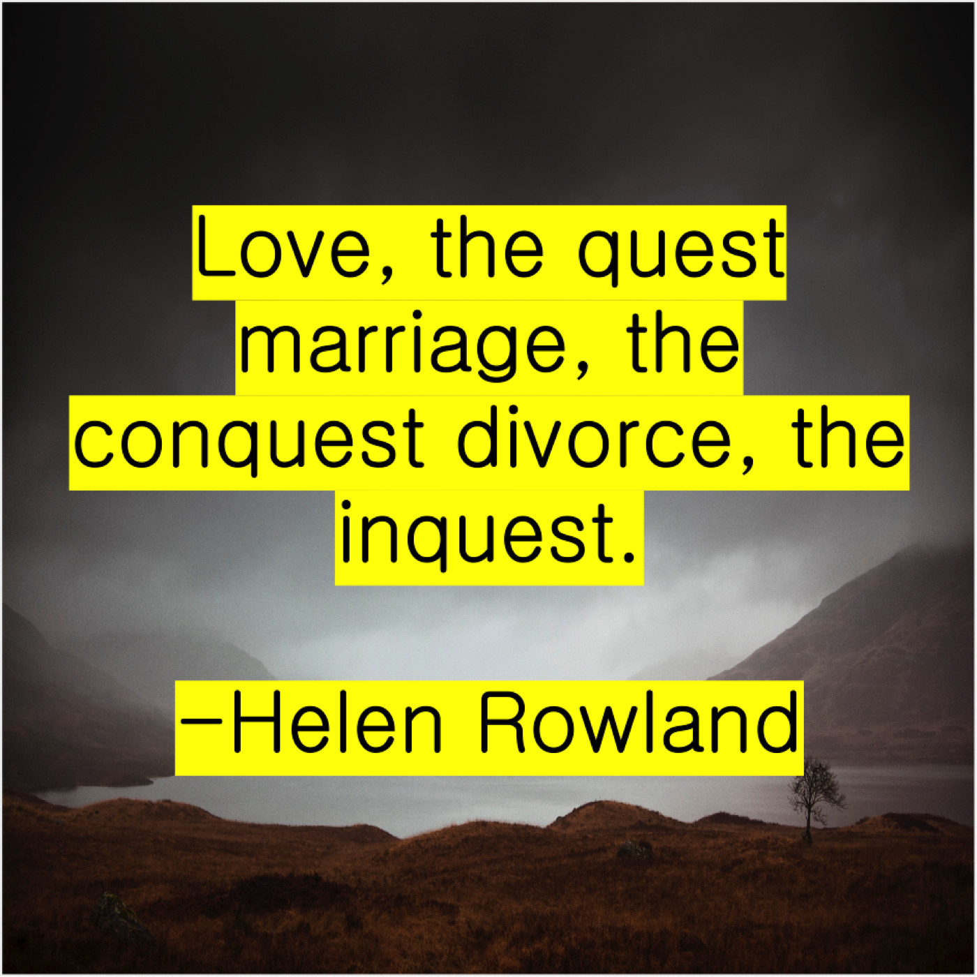 Helen Rowland Helen Rowland – Love, the quest marriage, the… April 1, 2019 admin “Love, the quest marriage, the conquest divorce, the inquest.”-Helen Rowland
