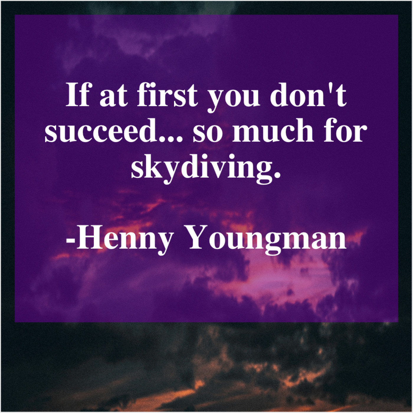 Henny Youngman Henny Youngman – If at first you don’t… April 7, 2019 admin “If at first you don’t succeed… so much for skydiving.”-Henny Youngman