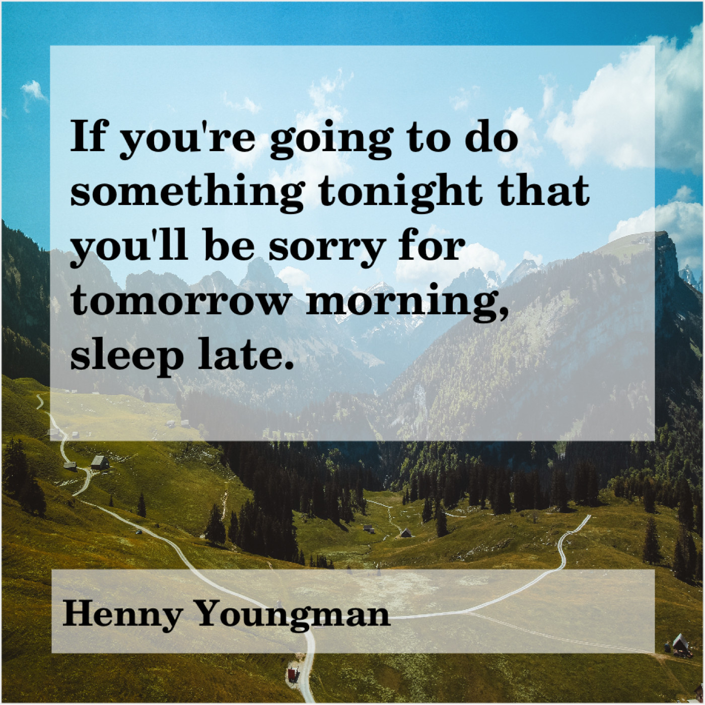 Henny Youngman Henny Youngman – If you’re going to do… October 12, 2019 admin “If you’re going to do something tonight that you’ll be sorry for tomorrow morning, sleep late.”-Henny Youngman