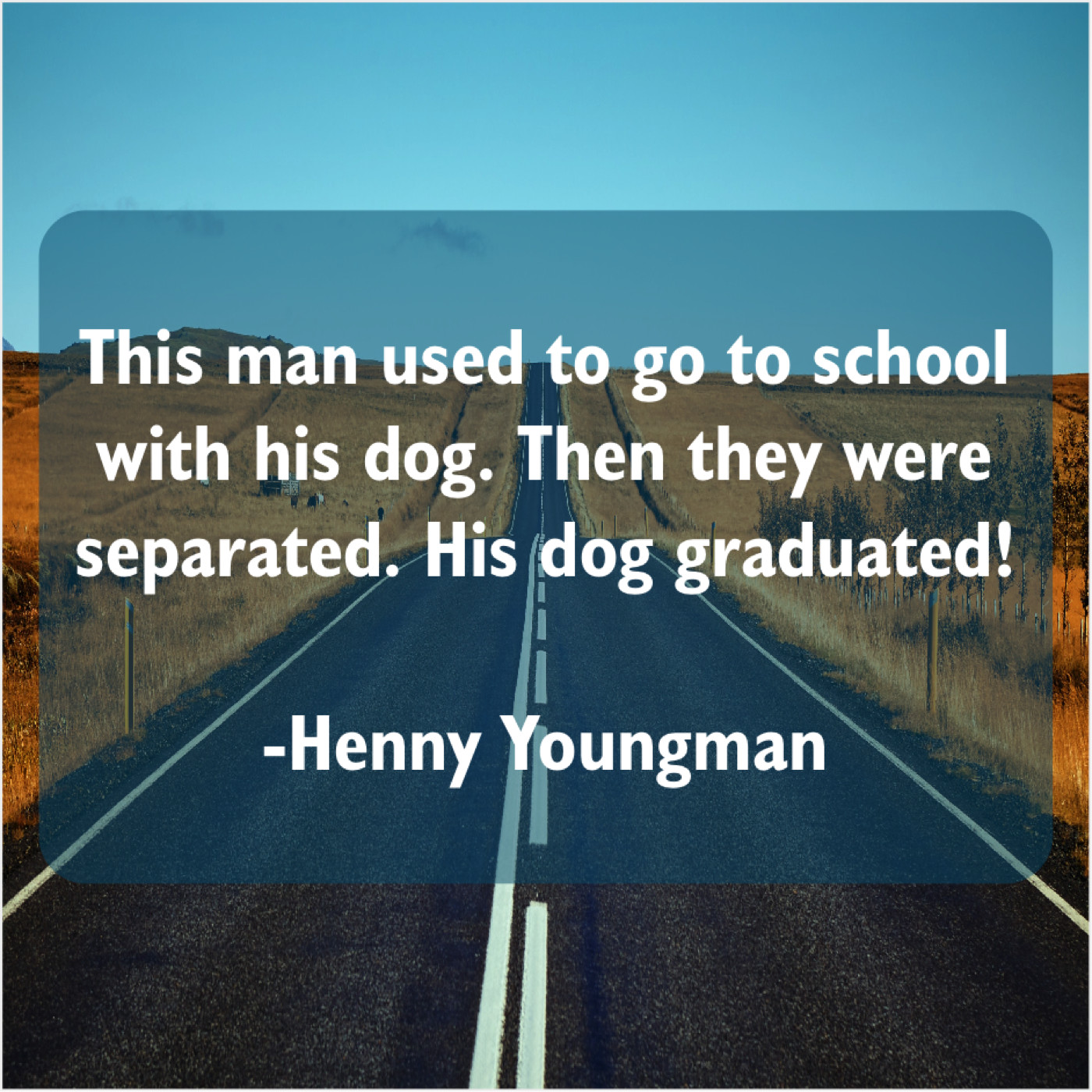 Henny Youngman Henny Youngman – This man used to go… December 21, 2018 admin “This man used to go to school with his dog. Then they were separated. His dog graduated!”-Henny Youngman