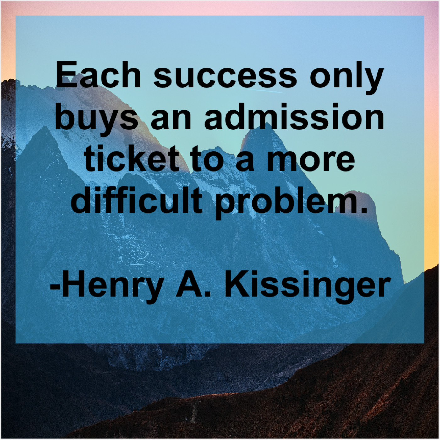 Henry A. Kissinger Henry A. Kissinger – Each success only buys an… November 11, 2018 admin “Each success only buys an admission ticket to a more difficult problem.”-Henry A. Kissinger