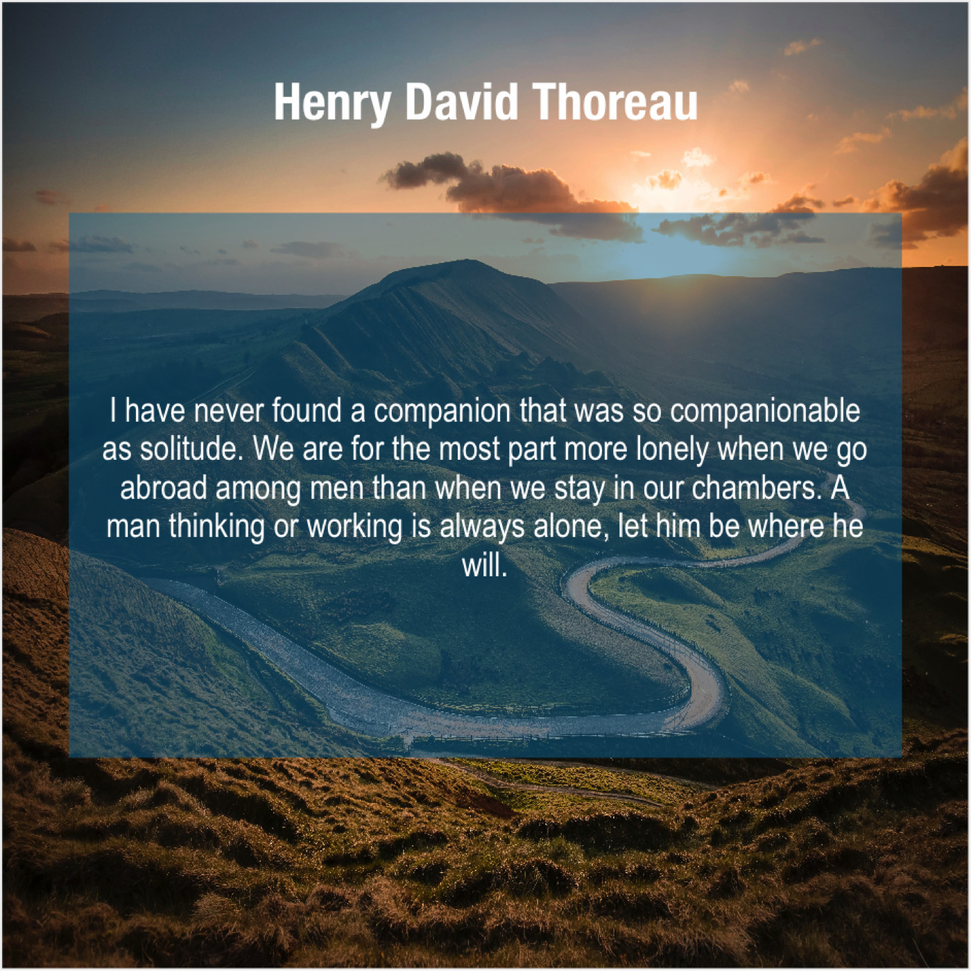 “I have never found a companion that was so companionable as solitude. We are for the most part more lonely when we go abroad among men than when we stay in our chambers. A man thinking or working is always alone, let him be where he will.”