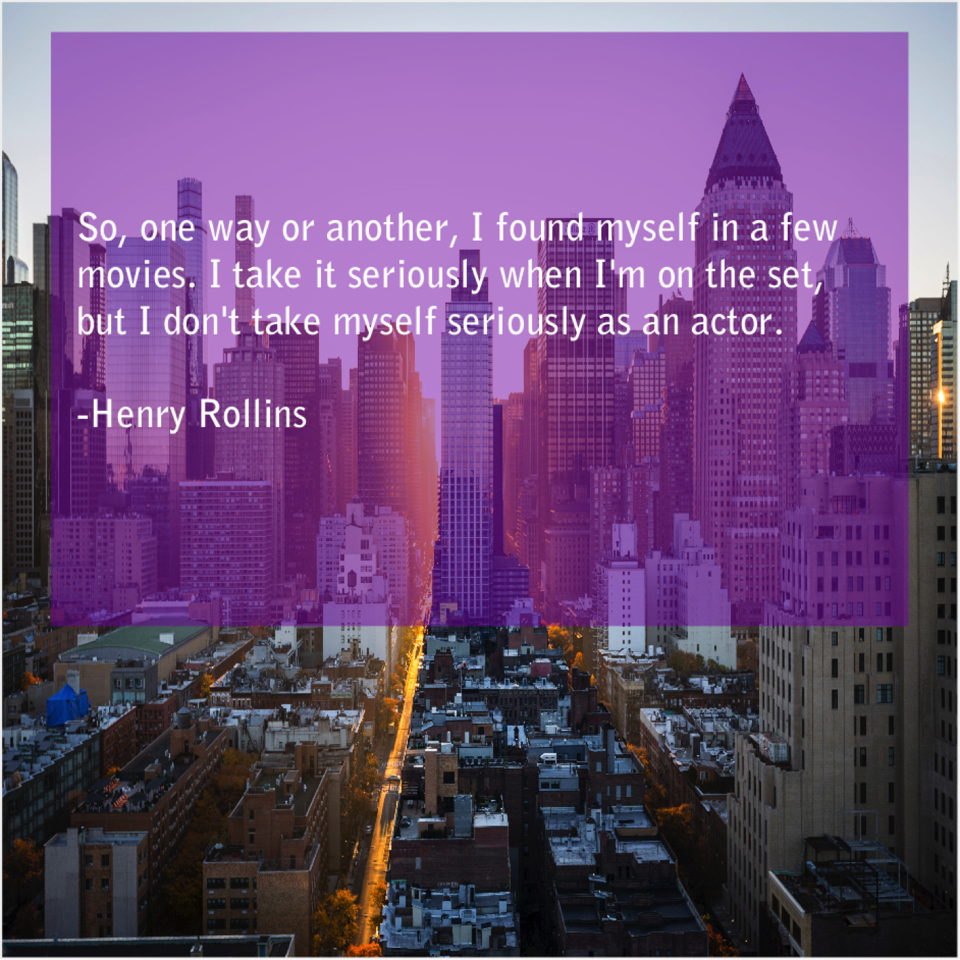 Henry Rollins Henry Rollins – So, one way or another… June 24, 2019 admin “So, one way or another, I found myself in a few movies. I take it seriously when I’m on the set, but I don’t take myself seriously as an actor.”-Henry Rollins